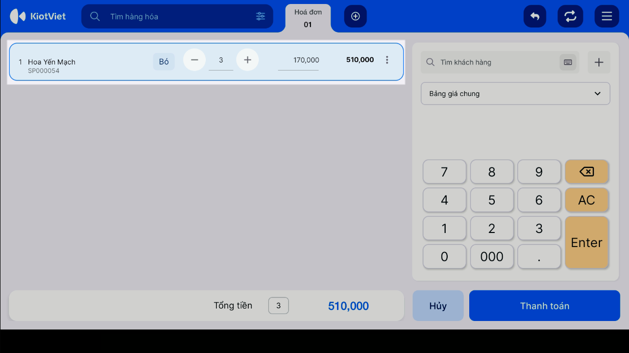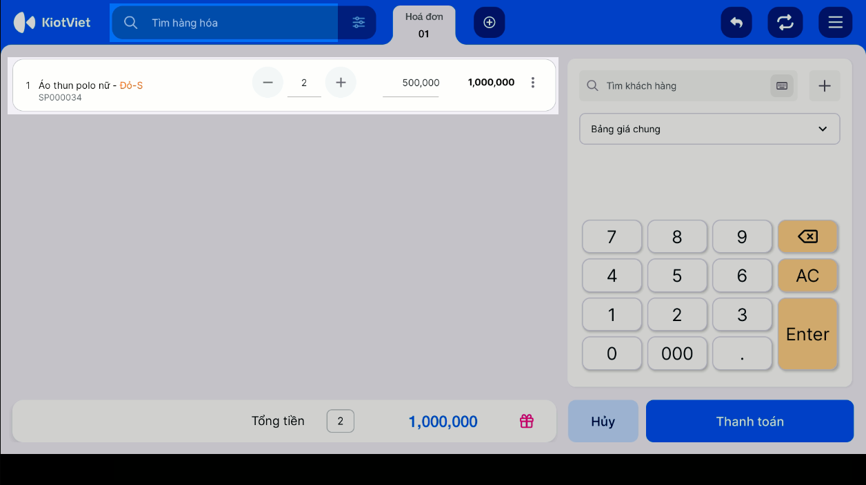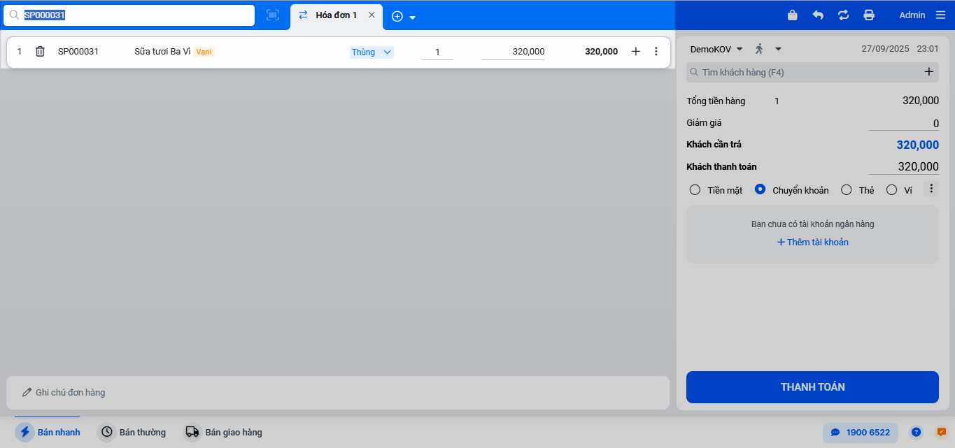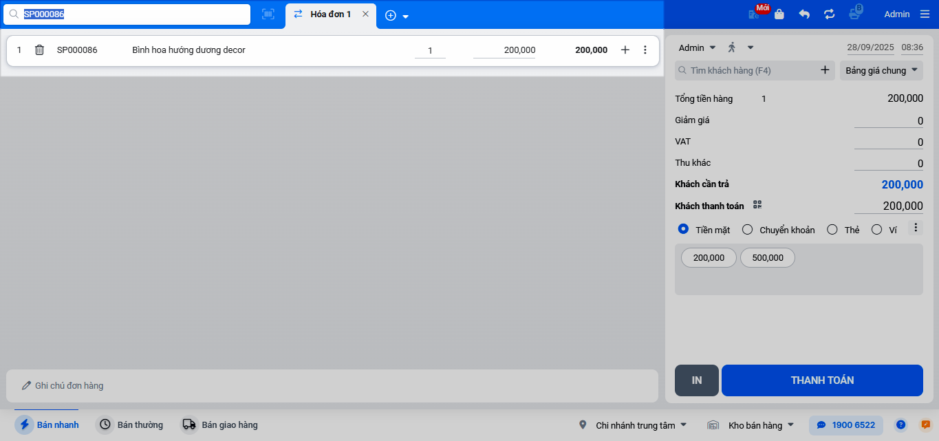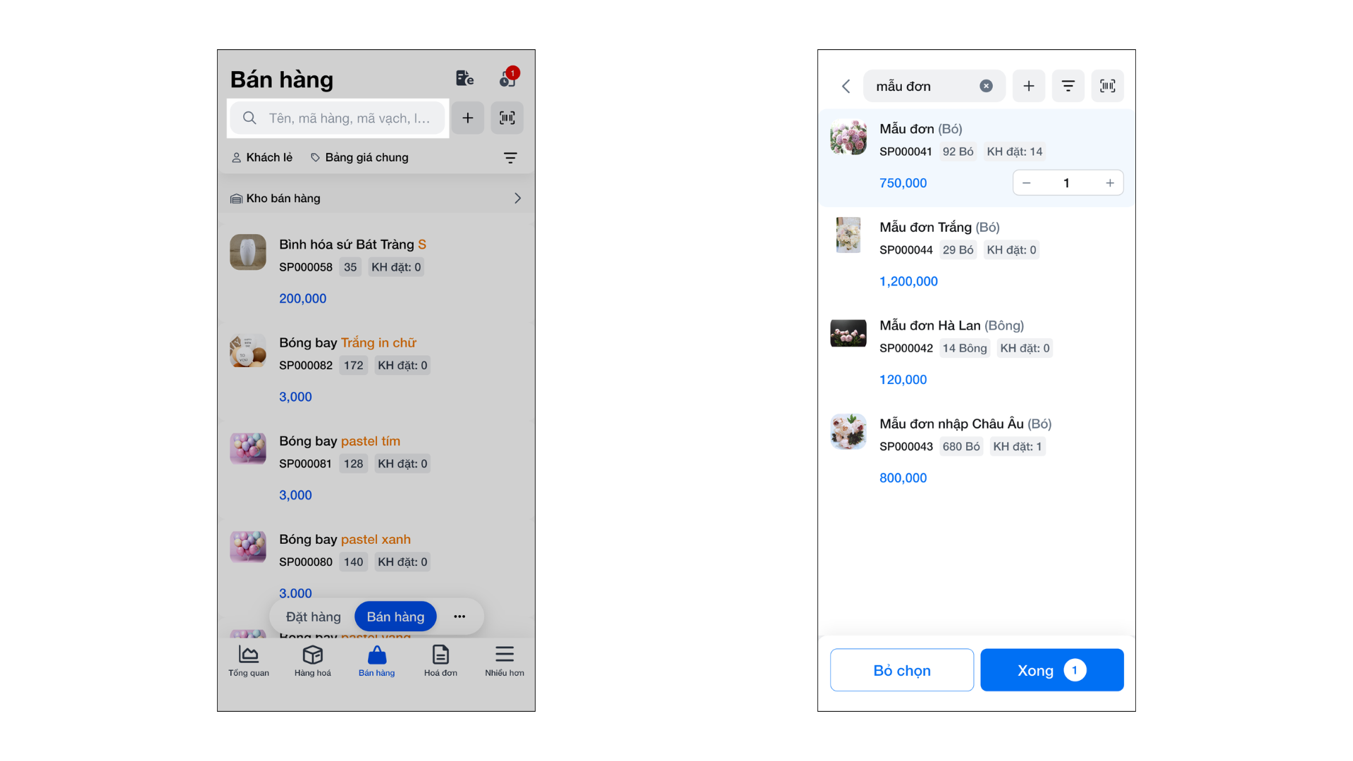 - Tình huống: Bạn cần tìm sản phẩm và thêm vào hóa đơn khi thanh toán tại quầy trên máy POS.