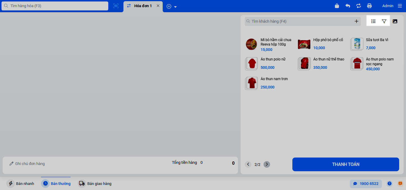 - Chọn theo hình ảnh: Ở chế độ Bán thường, danh sách hàng hóa kèm hình ảnh sẽ hiển thị bên phải màn hình. Bạn chỉ cần nhấp chuột vào hình ảnh sản phẩm để thêm vào hóa đơn.