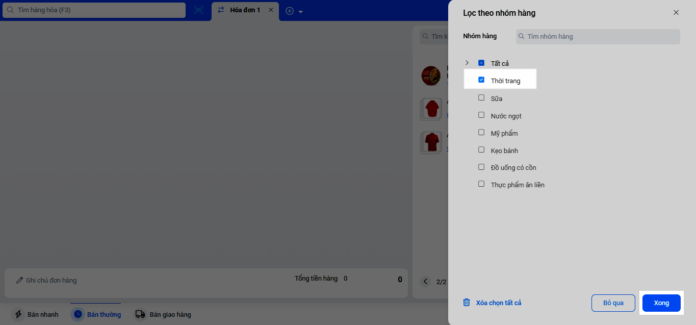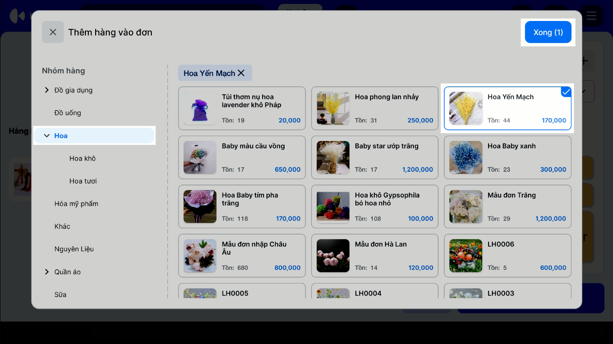 - Chọn từ nhóm hàng: Ứng dụng cũng hỗ trợ chọn nhanh sản phẩm từ các nhóm hàng hóa đã được phân loại sẵn.
