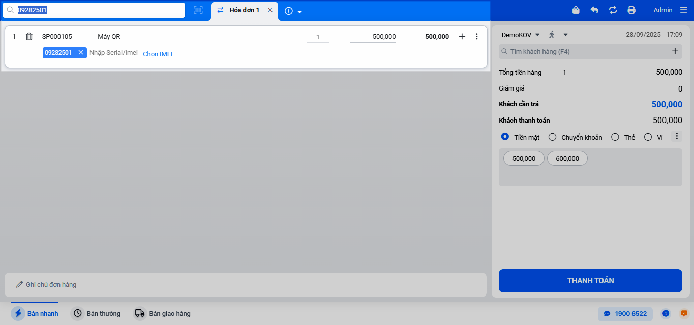 - Nếu dùng máy quét, bạn chỉ cần quét mã vạch của sản phẩm, hệ thống sẽ tự động thêm hàng hóa vào đơn hàng.