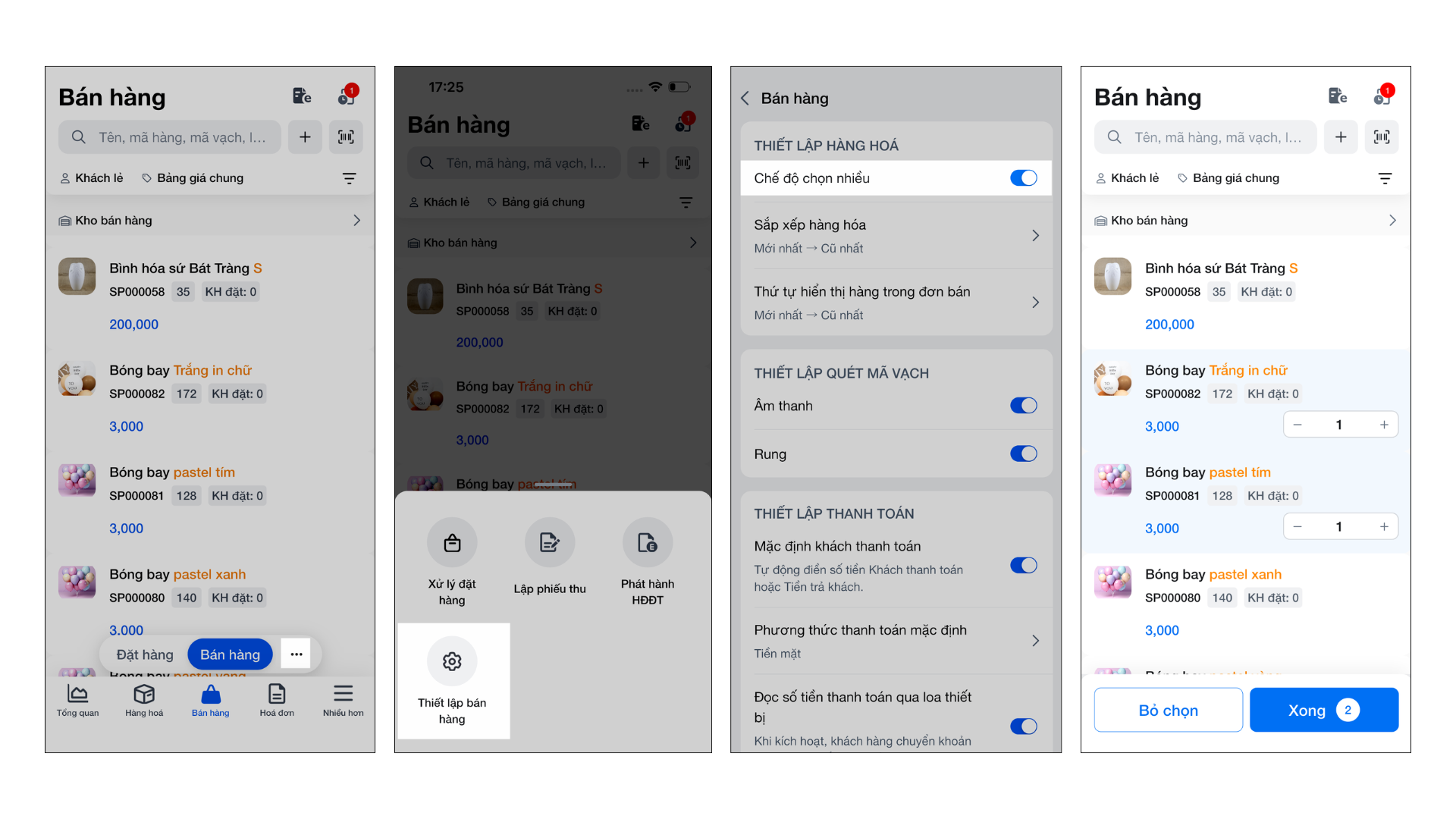 - Chọn nhiều sản phẩm: Bật Chế độ chọn nhiều để thêm nhiều mặt hàng vào đơn cùng một lúc.