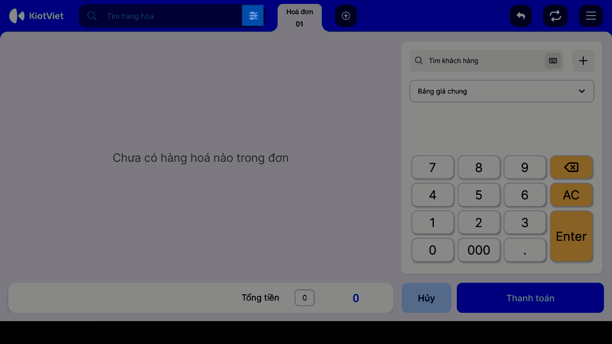 - Tìm kiếm hàng hóa: Nhập thông tin vào ô Tìm hàng hóa hoặc sử dụng máy quét mã vạch. Mỗi lần quét hoặc chọn, số lượng sản phẩm sẽ tự động tăng thêm 1.