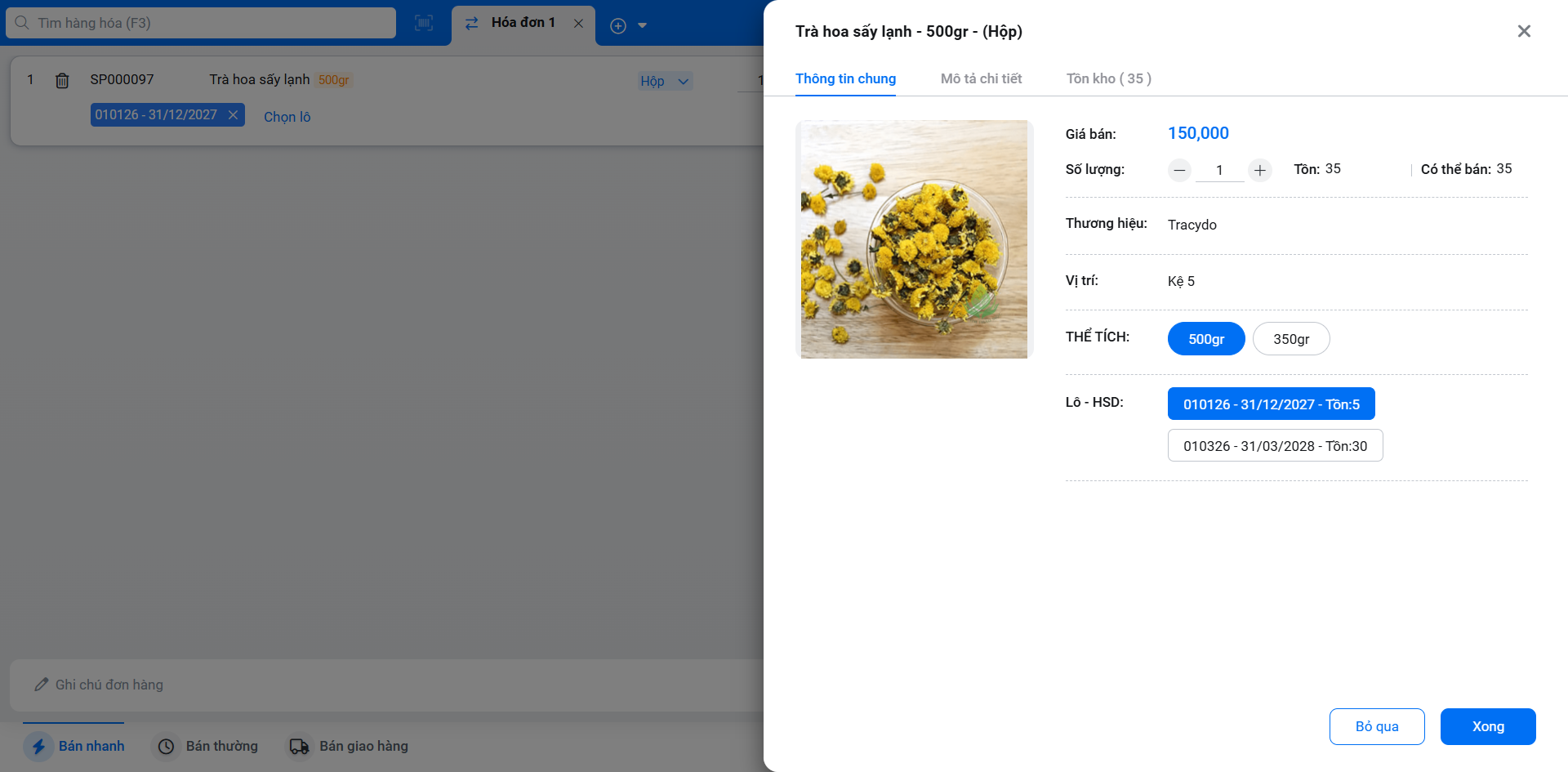 - Tình huống: Cửa hàng của bạn kinh doanh các mặt hàng cần quản lý theo lô và hạn sử dụng (ví dụ: dược phẩm, mỹ phẩm, thực phẩm). Bạn cần tìm và chọn đúng lô hàng khi bán.