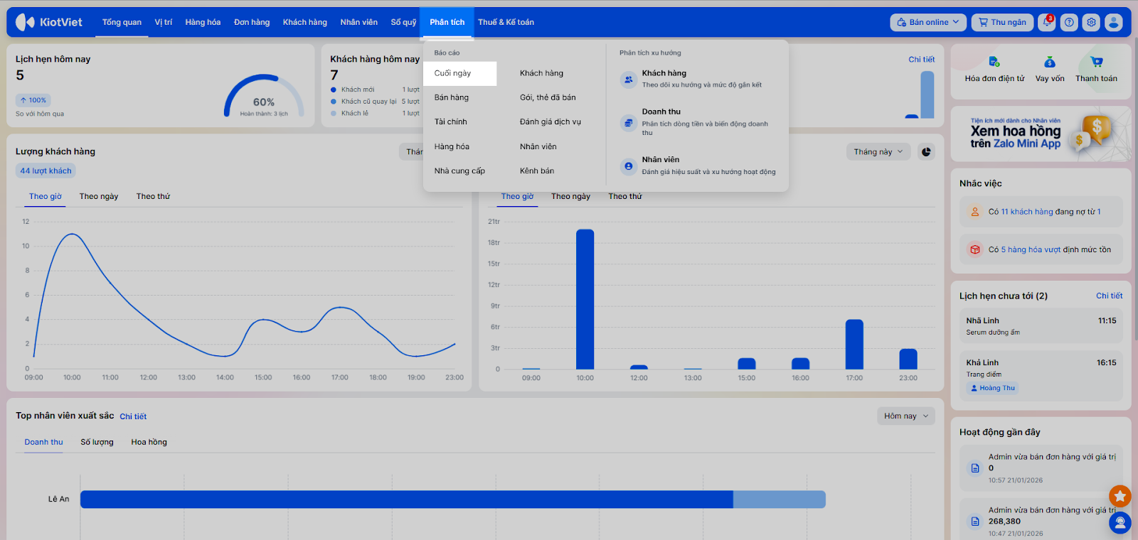 - Bạn chọn Phân tích/Báo cáo → Cuối ngày.