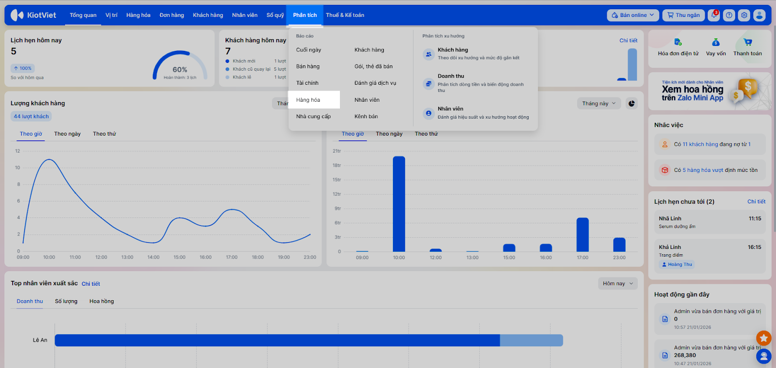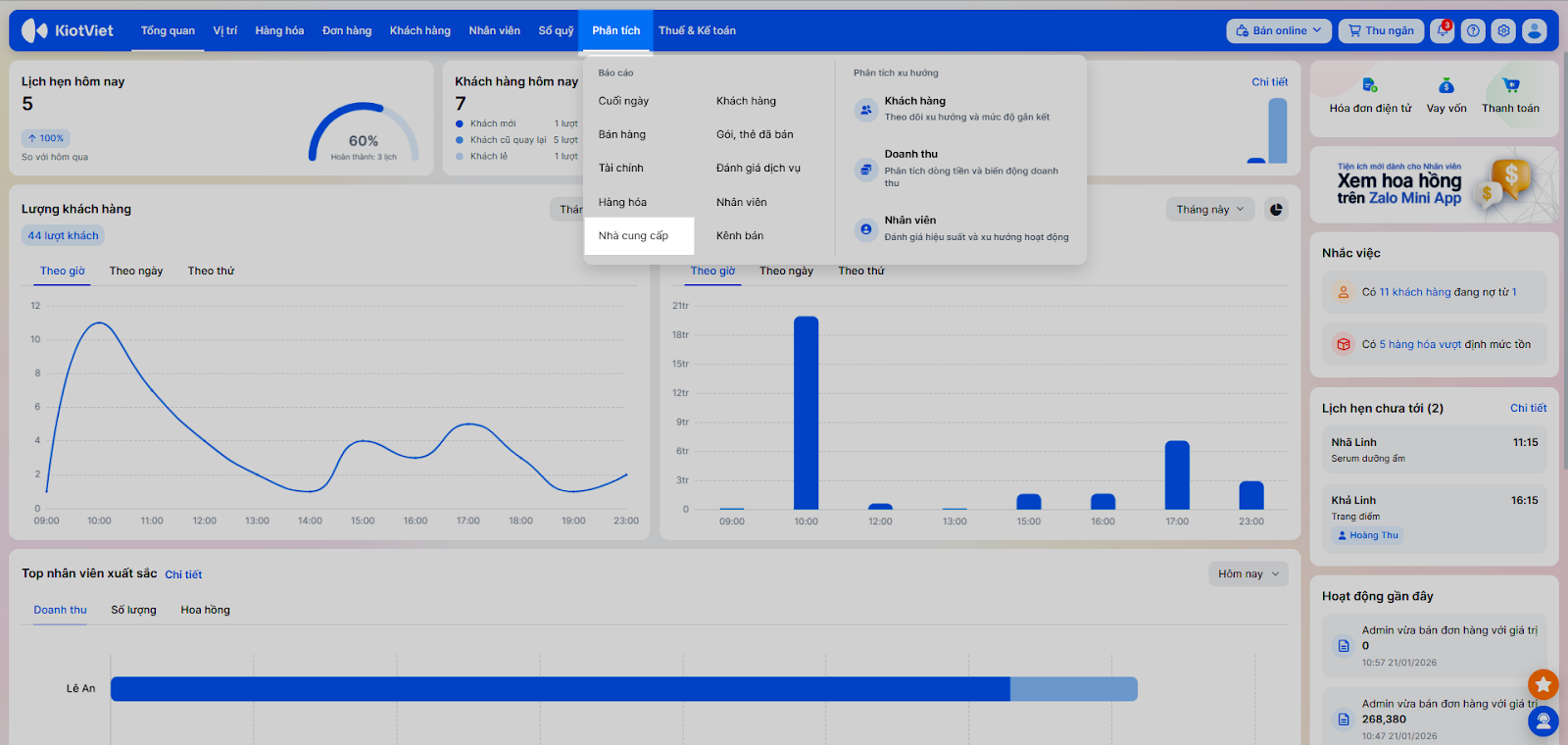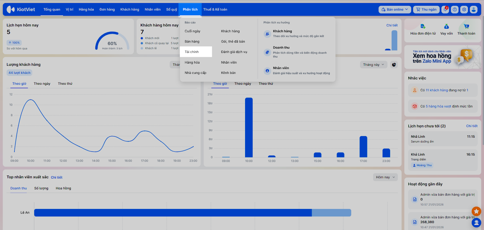 - Báo cáo khách hàng: Phân tích khách VIP, công nợ.