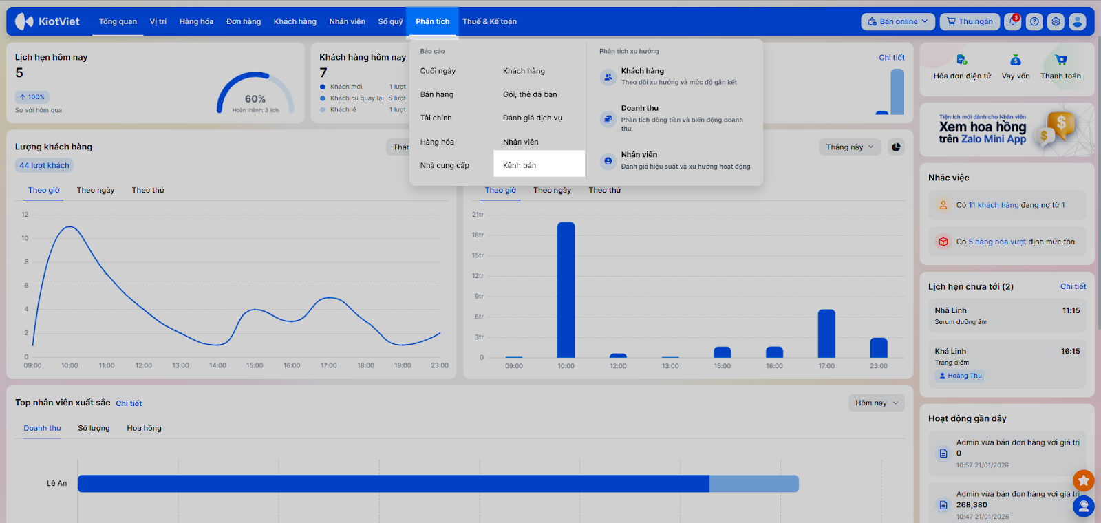 - Bạn chọn Phân tích/Báo cáo → Kênh bán hàng.