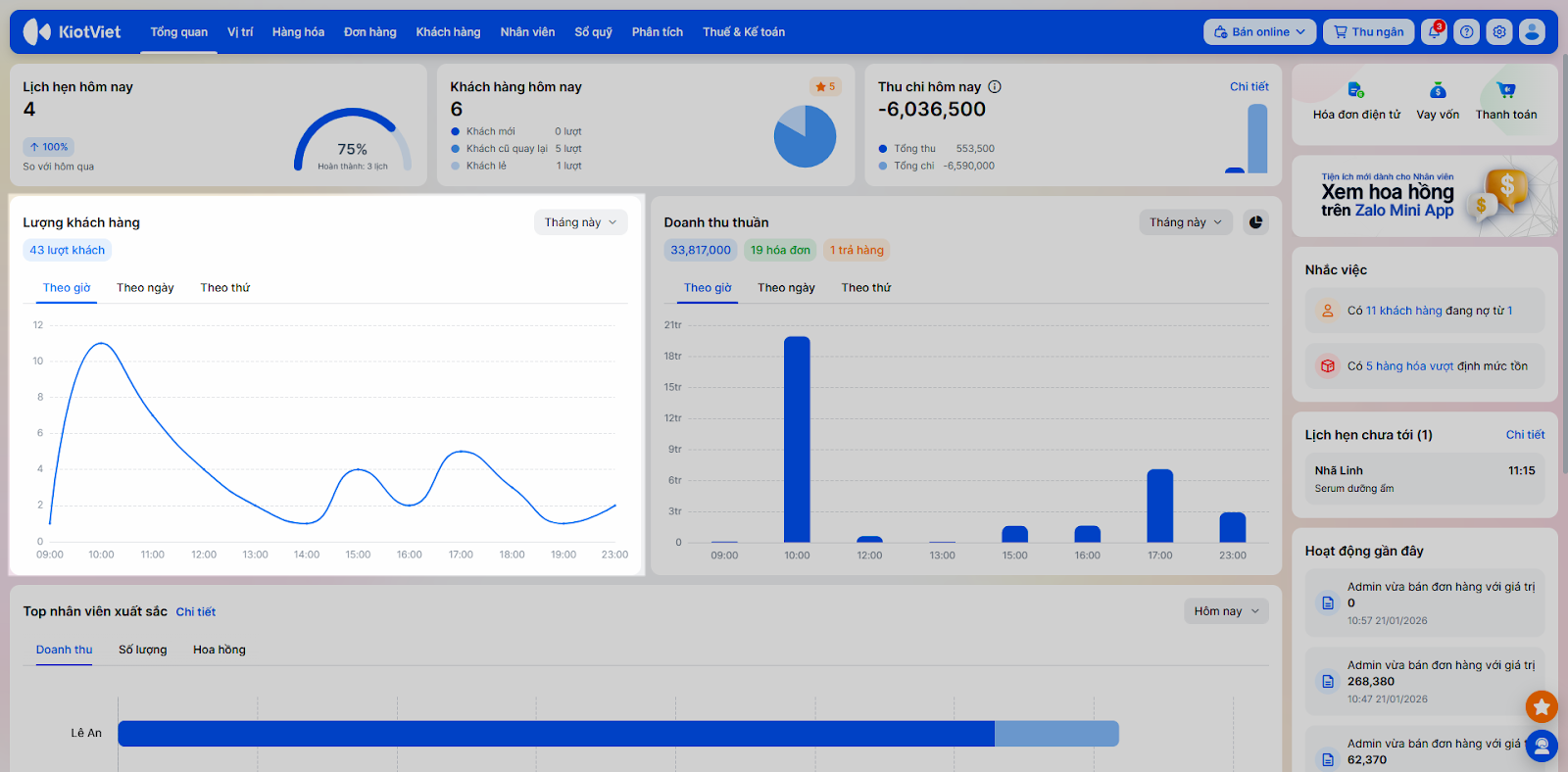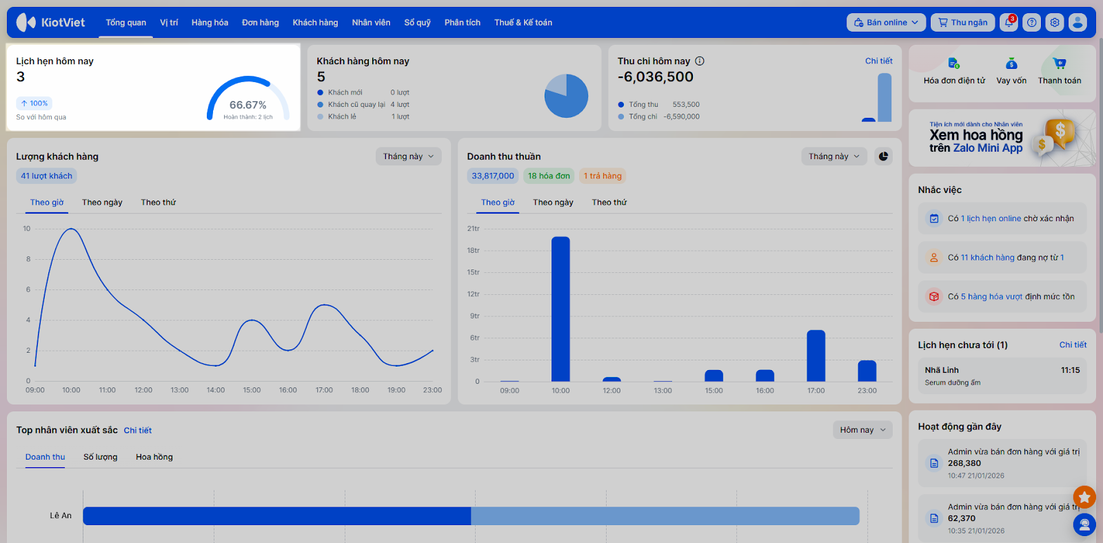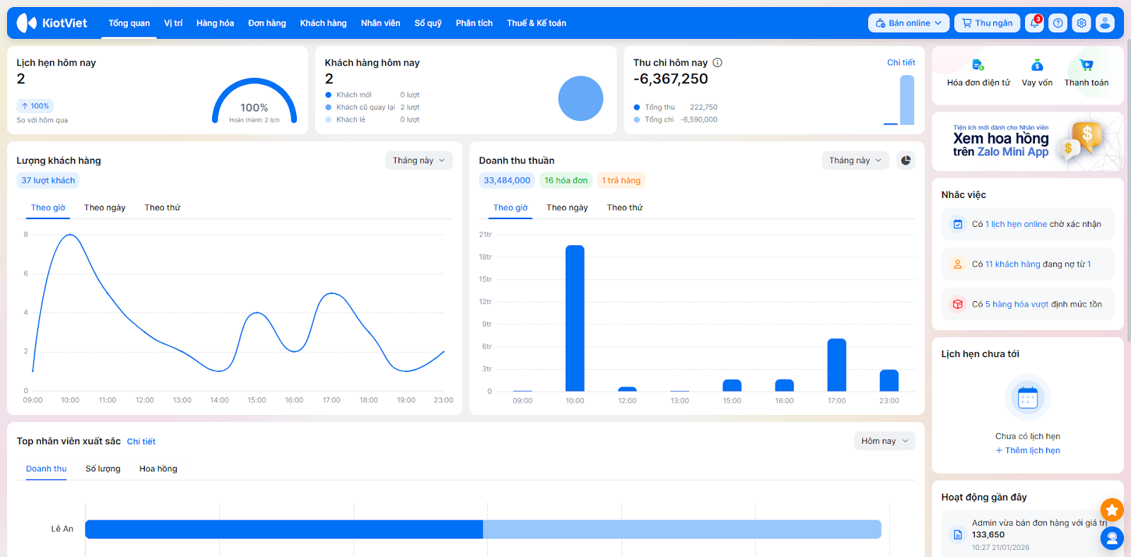 - Khách hàng hôm nay: Thể hiện lượt khách trong ngày.
