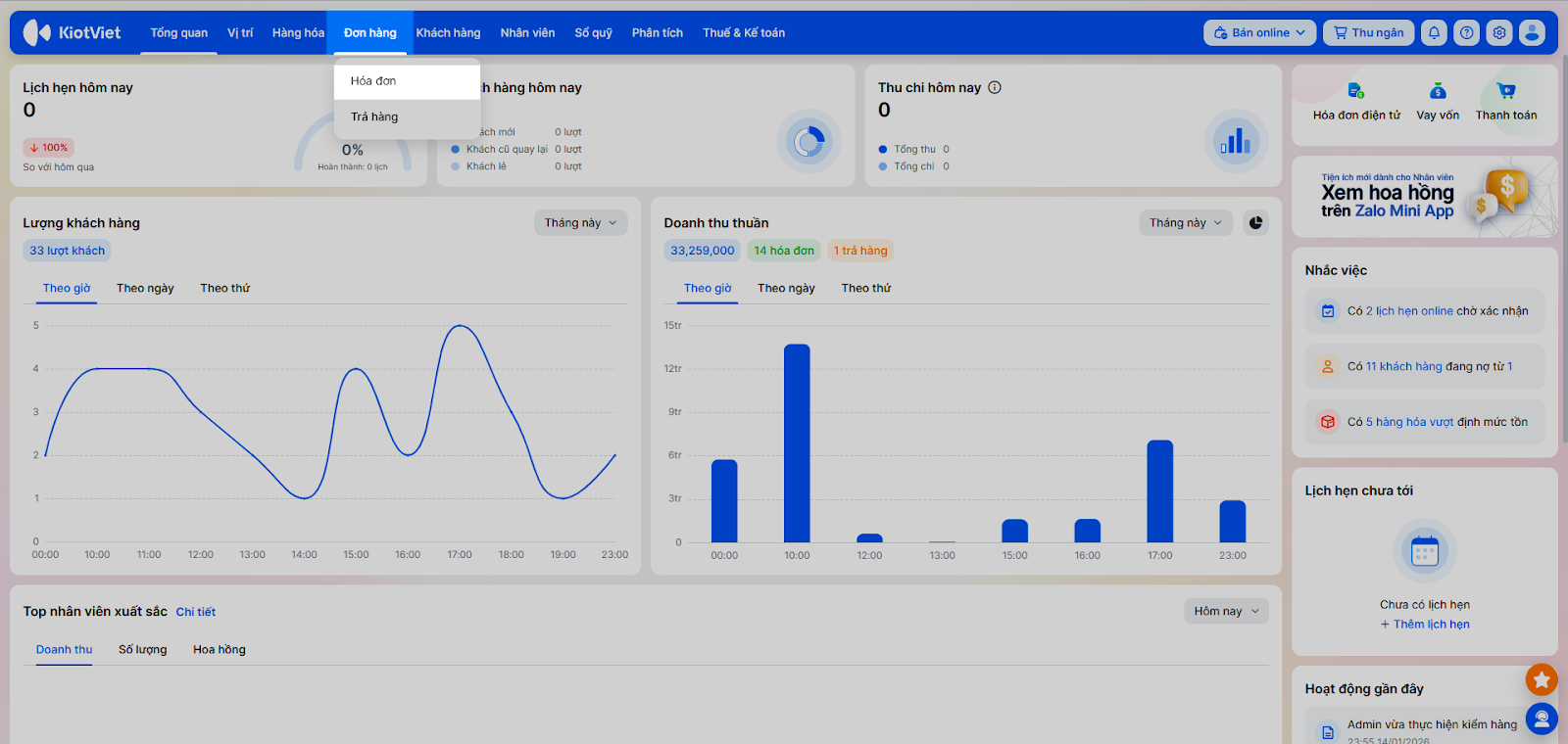 - Quản lý hoa hồng: Ghi nhận và điều chỉnh chính xác nhân viên thực hiện/tư vấn để tính lương.