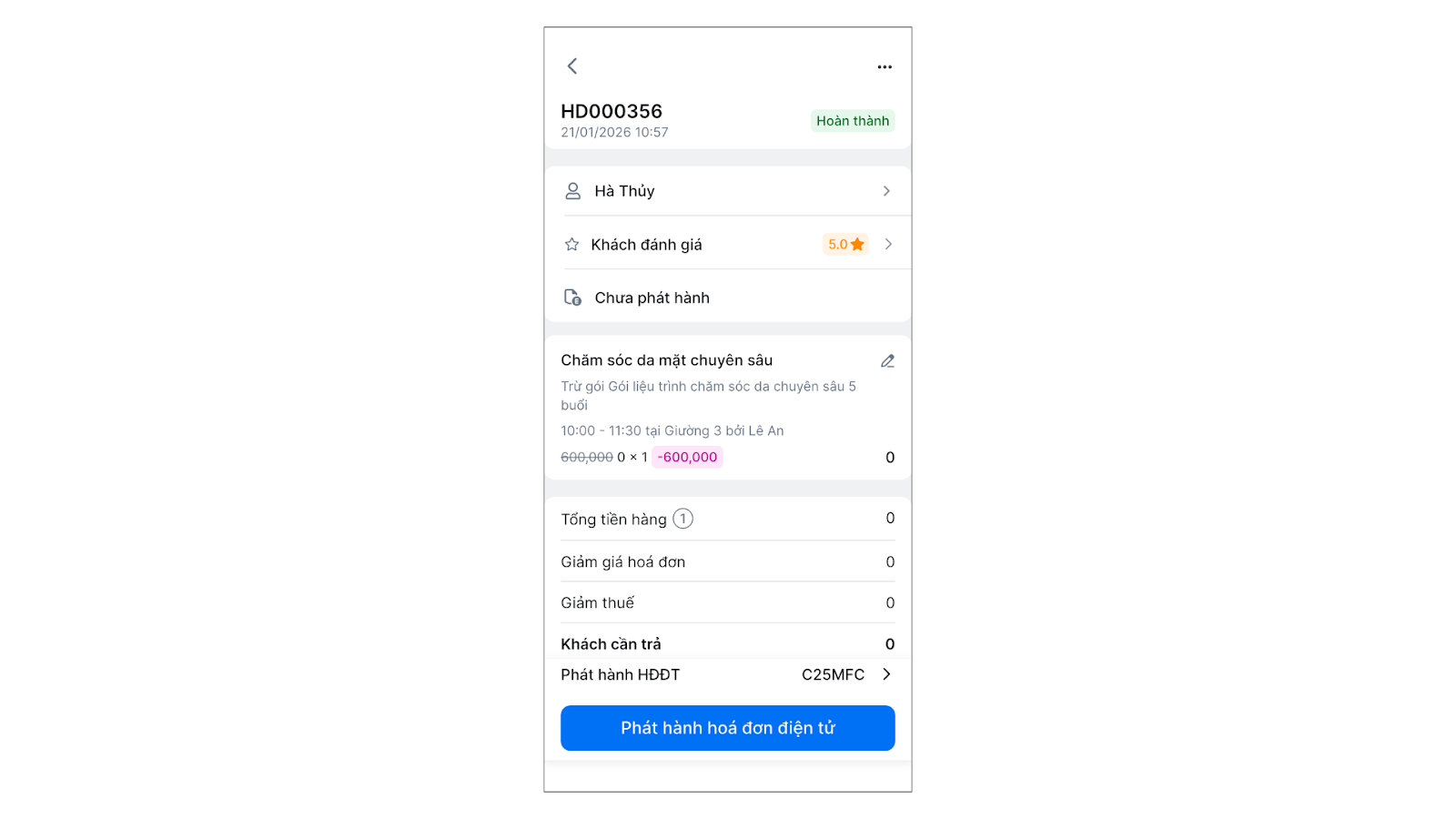 - Tình huống: Bạn đang kiểm tra chi tiết hóa đơn và cần phát hành hóa đơn điện tử ngay trên điện thoại.