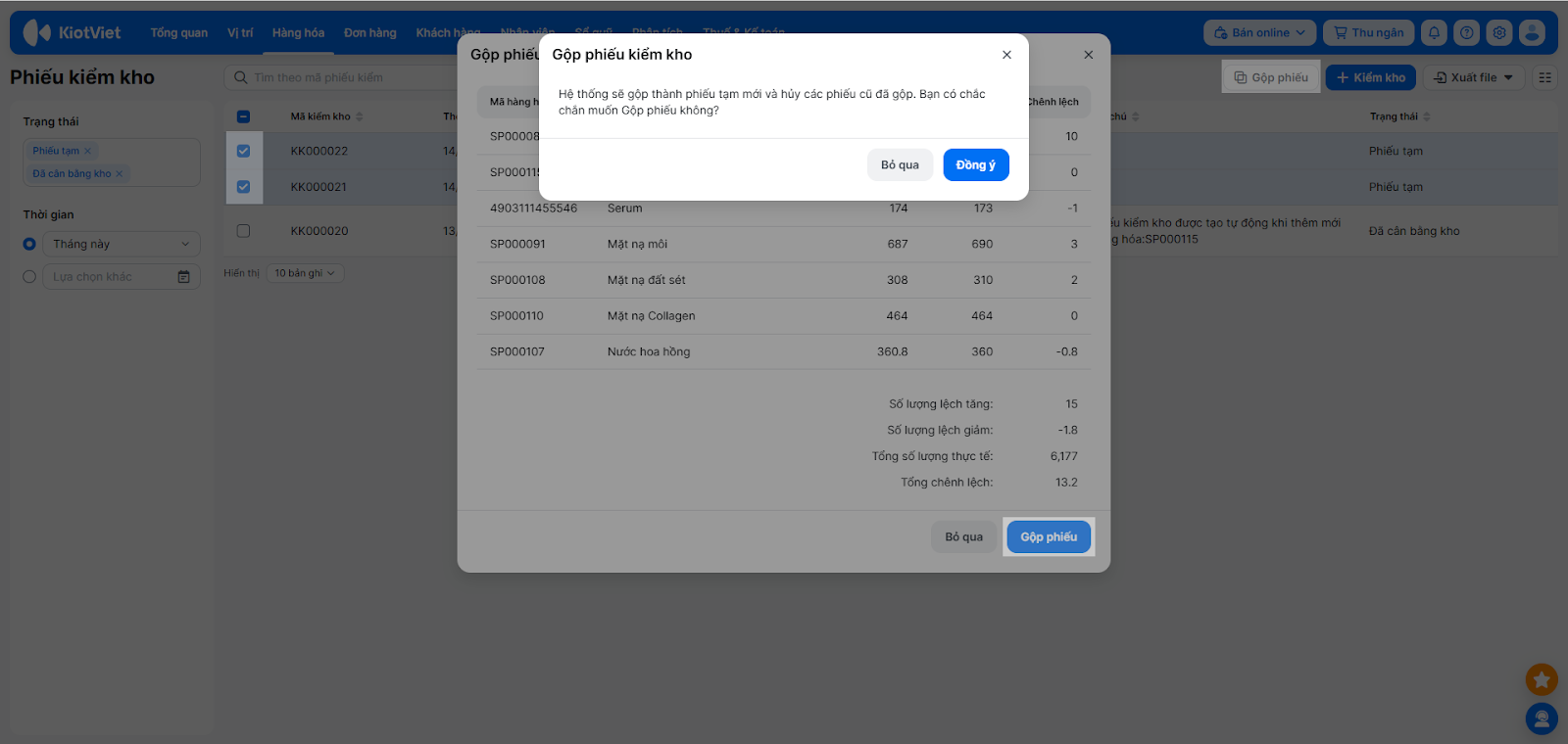 - Nhấn Gộp phiếu → xác nhận Đồng ý.