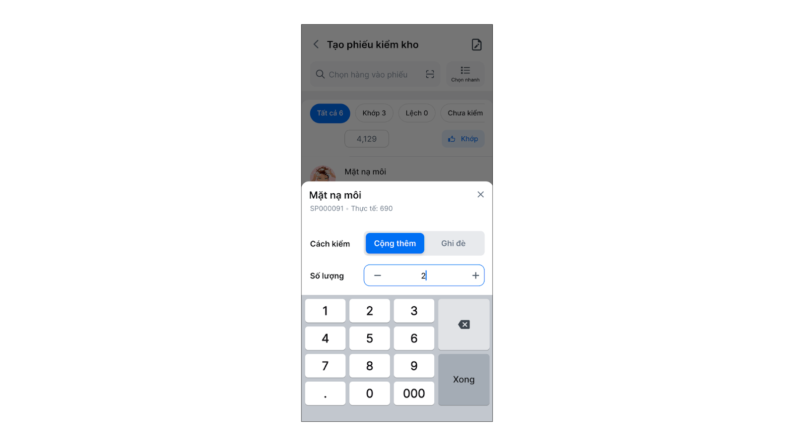 - Ghi đè khi cần sửa lại số lượng đã kiểm trước đó hoặc