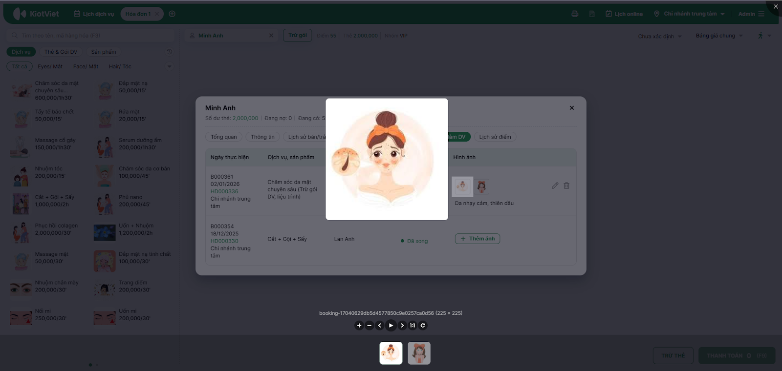 Tính năng này cực kỳ hữu ích cho nhân viên tư vấn. Ngay trong quá trình tạo hóa đơn hoặc đặt lịch, bạn có thể nắm bắt nhanh toàn bộ thông tin quan trọng của khách để tư vấn tiếp mà không cần chuyển màn hình.