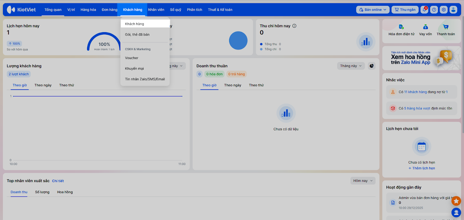 - Cách 2: Trên màn hình Quản lý → Khách hàng → Khách hàng