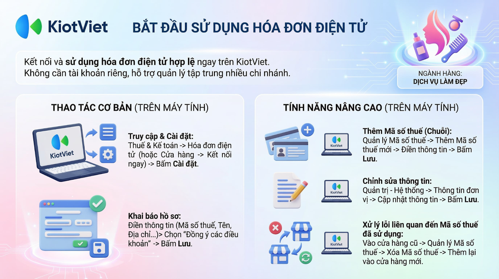 - Tình huống: Doanh nghiệp của bạn có nhiều chi nhánh/cơ sở kinh doanh với các Mã số thuế khác nhau và muốn quản lý tất cả trên cùng một tài khoản KiotViet.