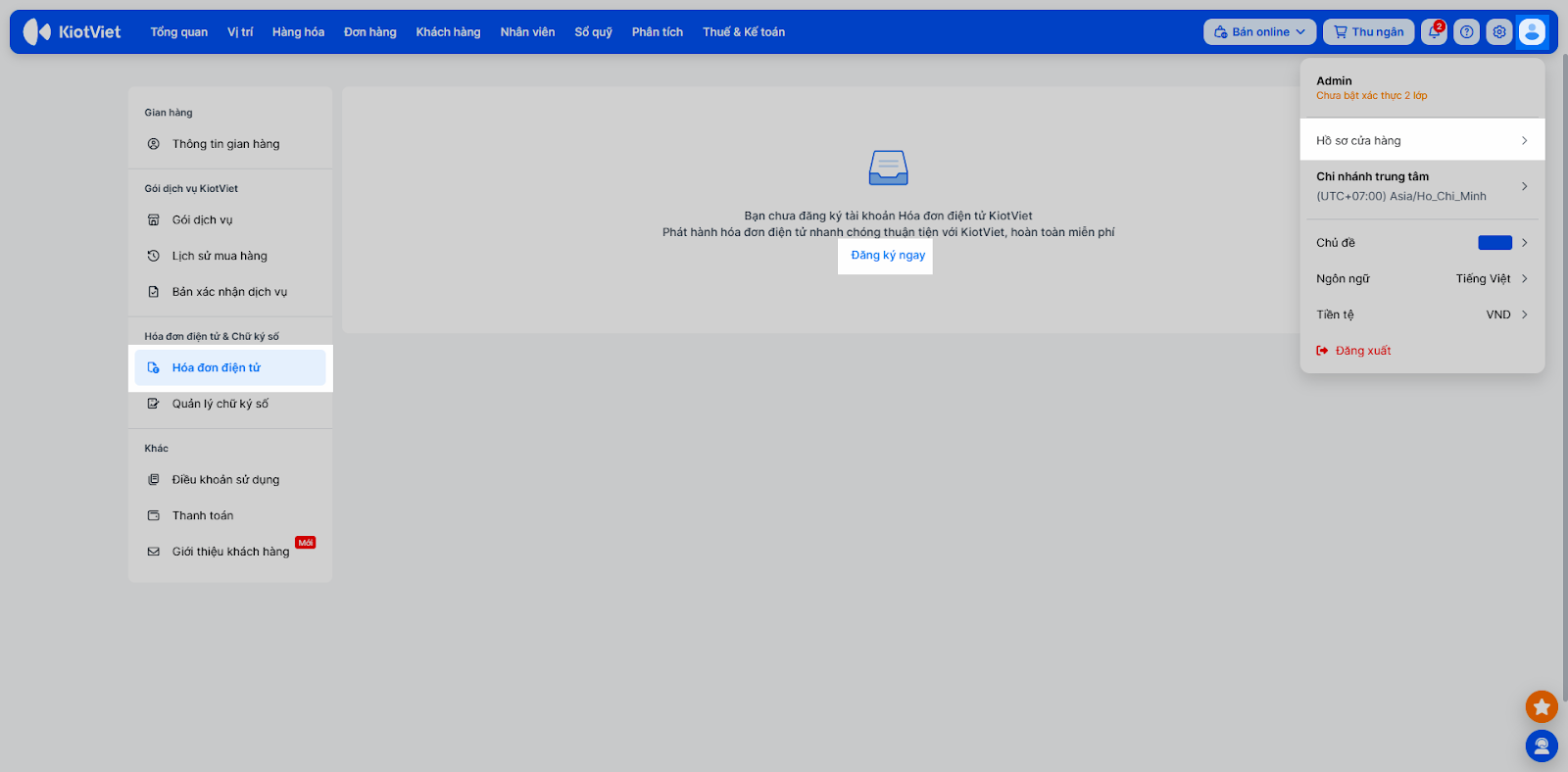Bắt đầu sử dụng Hóa đơn điện tử KiotViet