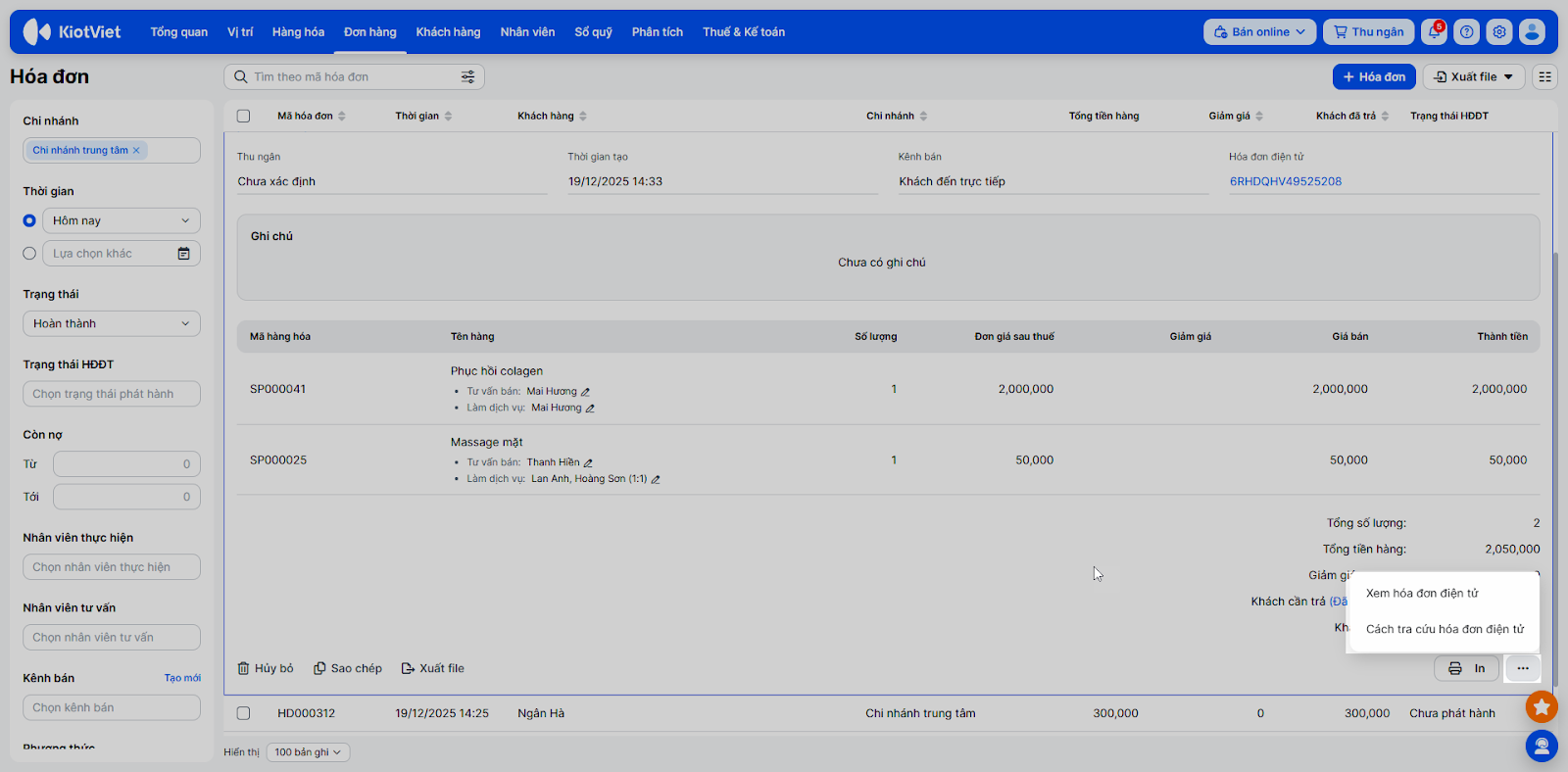 - Ngoài ra, khi xem chi tiết hóa đơn chưa được phát hành hóa đơn điện tử, bạn cũng có thể phát hành hóa đơn điện tử ngay tại đây.
