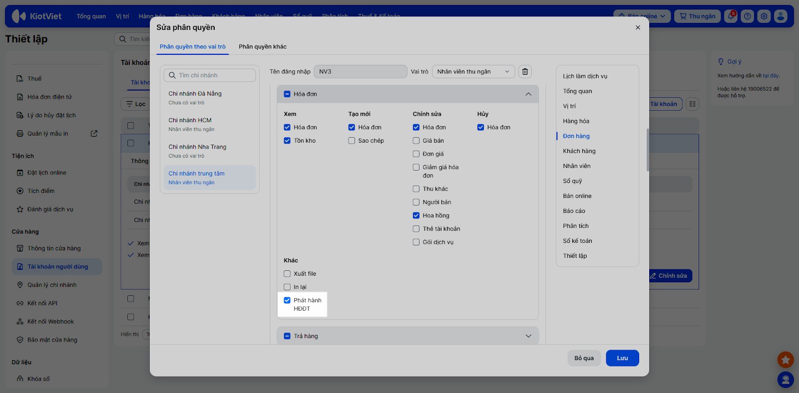 - Tài khoản của bạn cần được cấp quyền Phát hành HĐĐT (trong mục Đơn hàng → Hóa đơn).