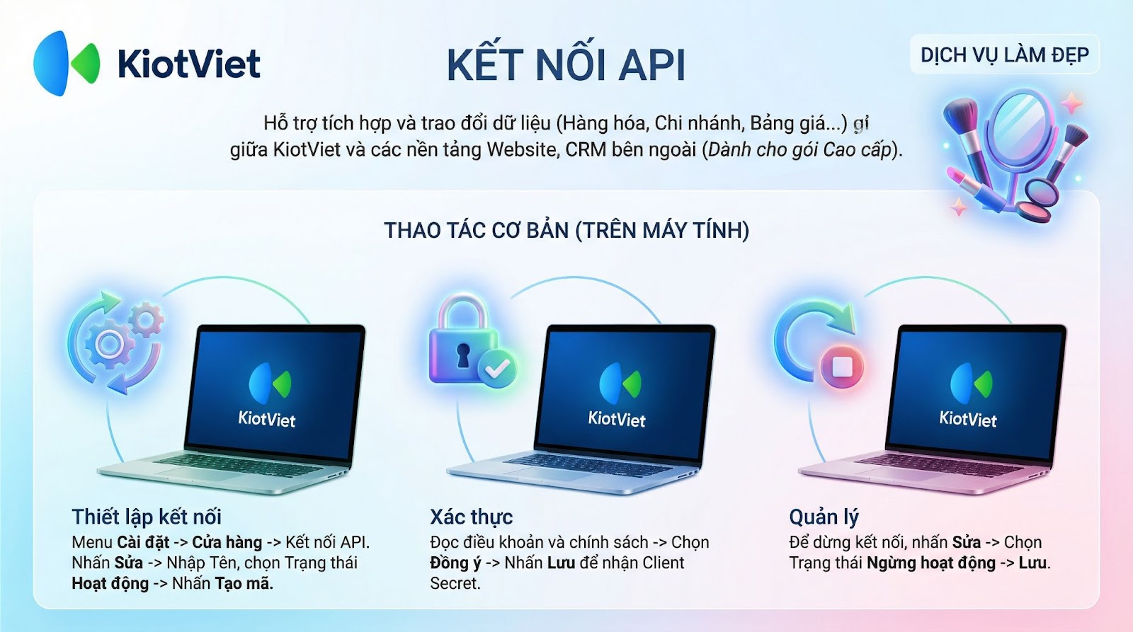 KiotViet Public API được phát triển để hỗ trợ việc tích hợp và trao đổi dữ liệu giữa KiotViet và các nền tảng website, CRM…