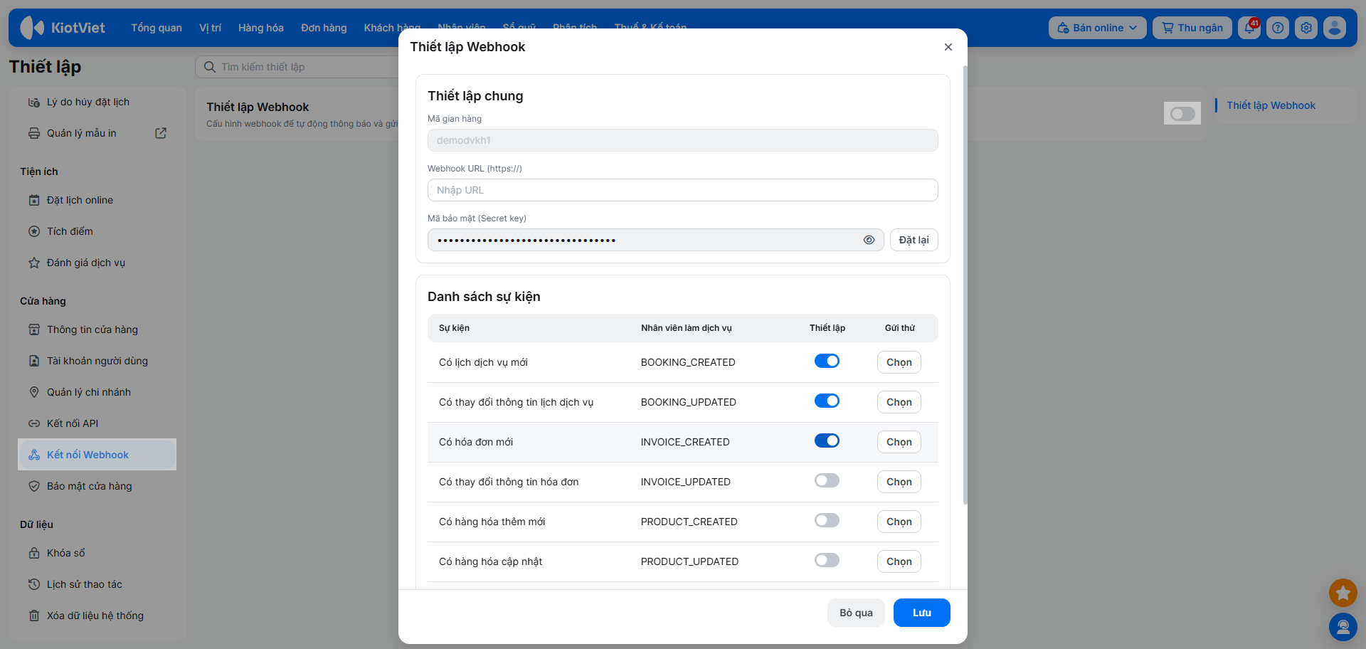 Như vậy, KiotViet đã thực hiện xong phần hướng dẫn sử dụng Webhook.