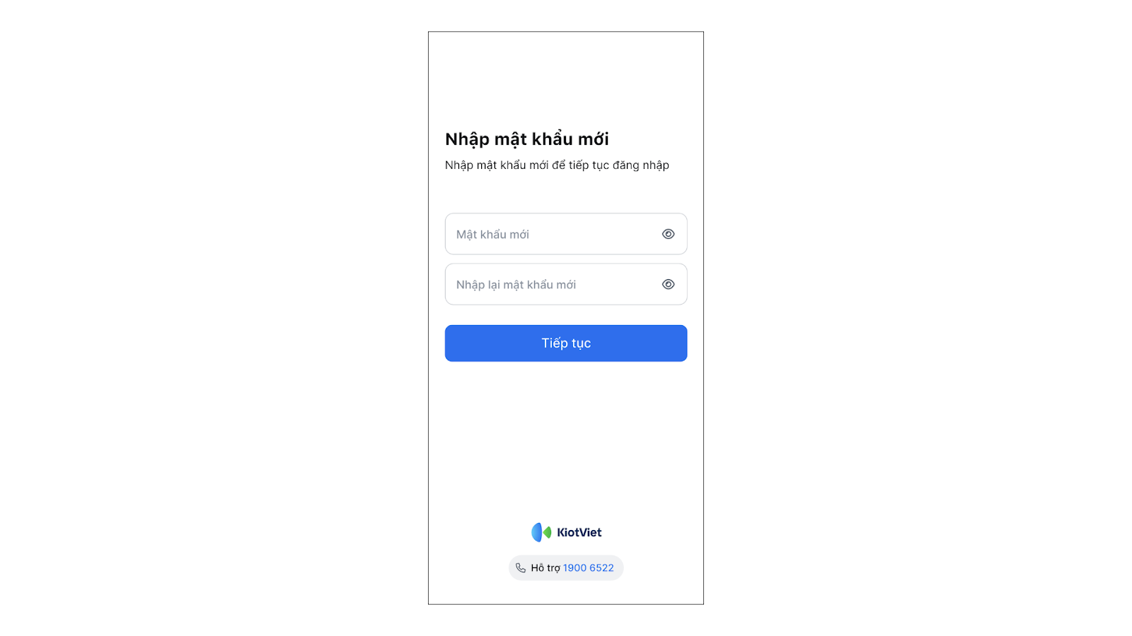 - Nhập Mật khẩu mới và chọn Tiếp tục để chuyển đến màn hình đăng nhập.