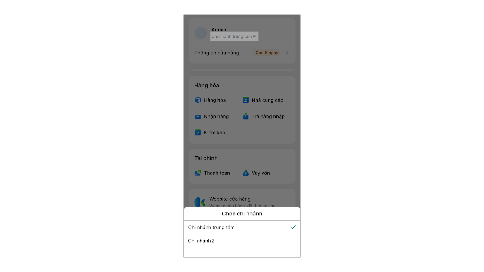 - Tình huống: Bạn quản lý một chuỗi Spa gồm 2 chi nhánh. Bạn muốn chuyển đổi qua lại giữa hai chi nhánh trên ứng dụng để xem báo cáo riêng biệt.