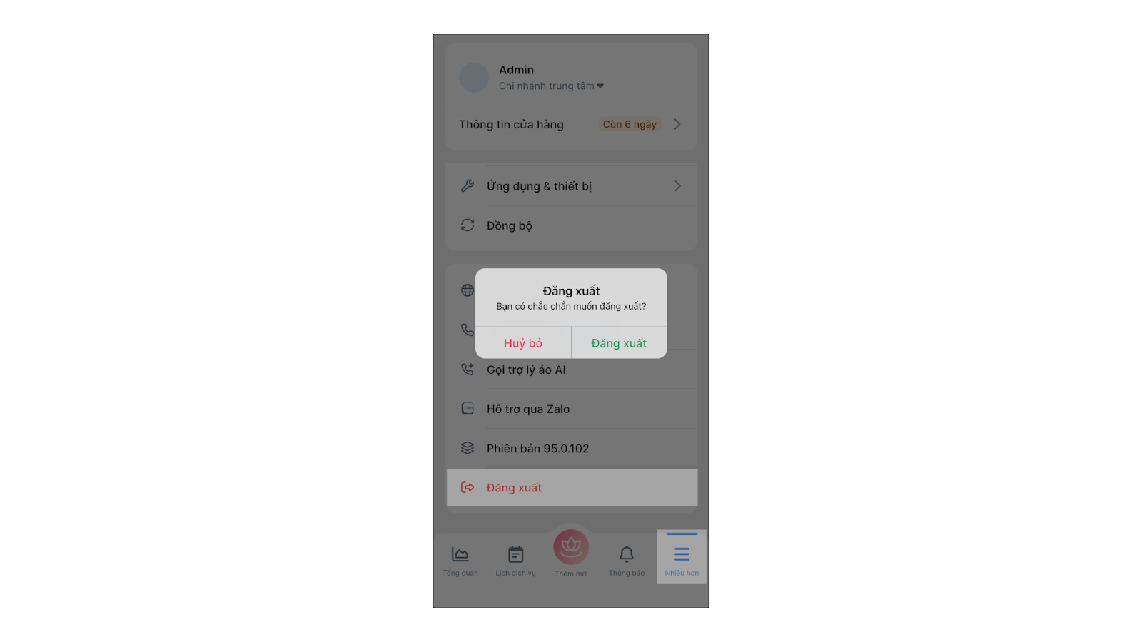 - Chọn Đăng xuất và xác nhận Đăng xuất.