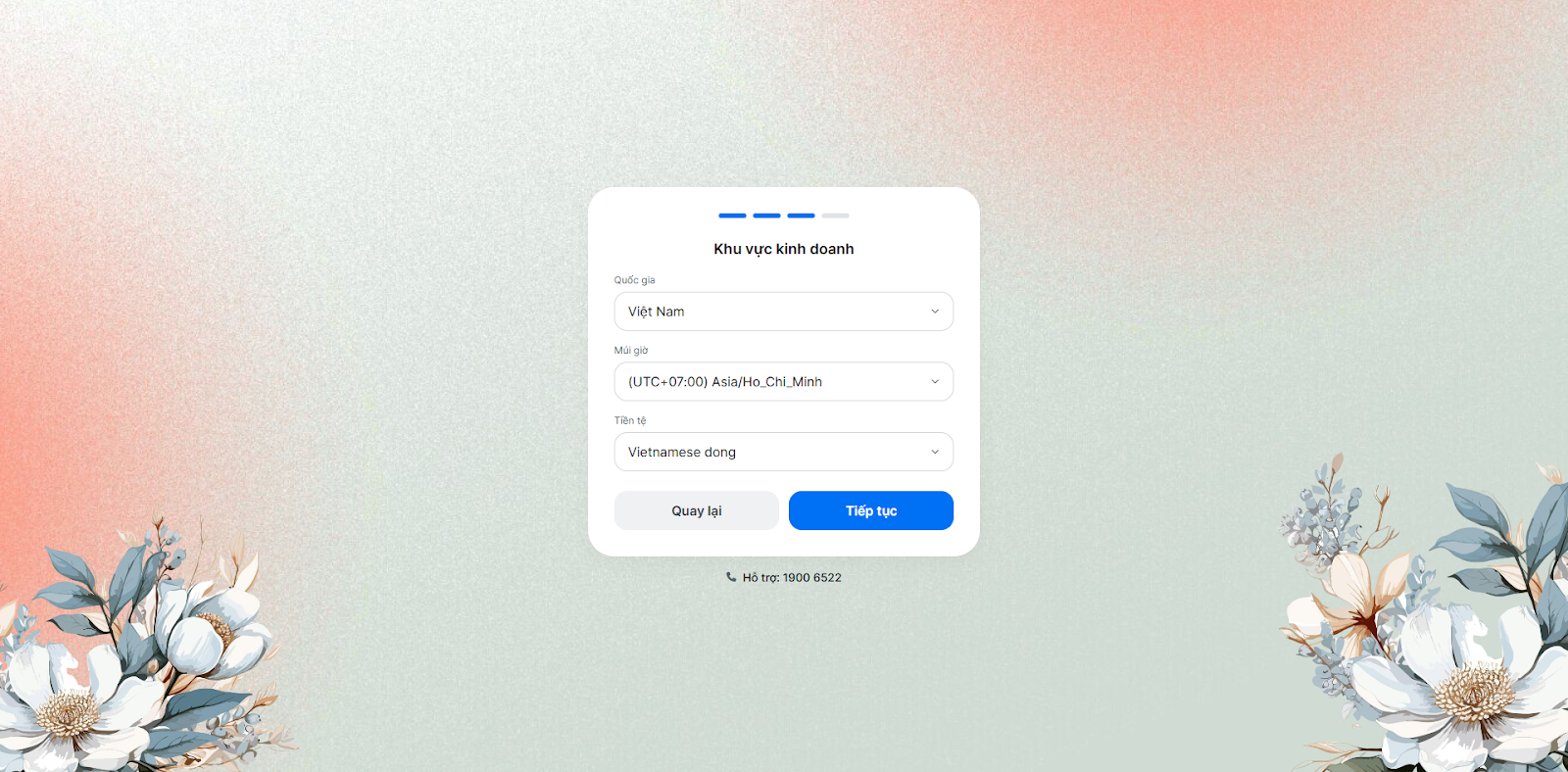 - Chọn Khu vực kinh doanh → nhấn Tiếp tục.