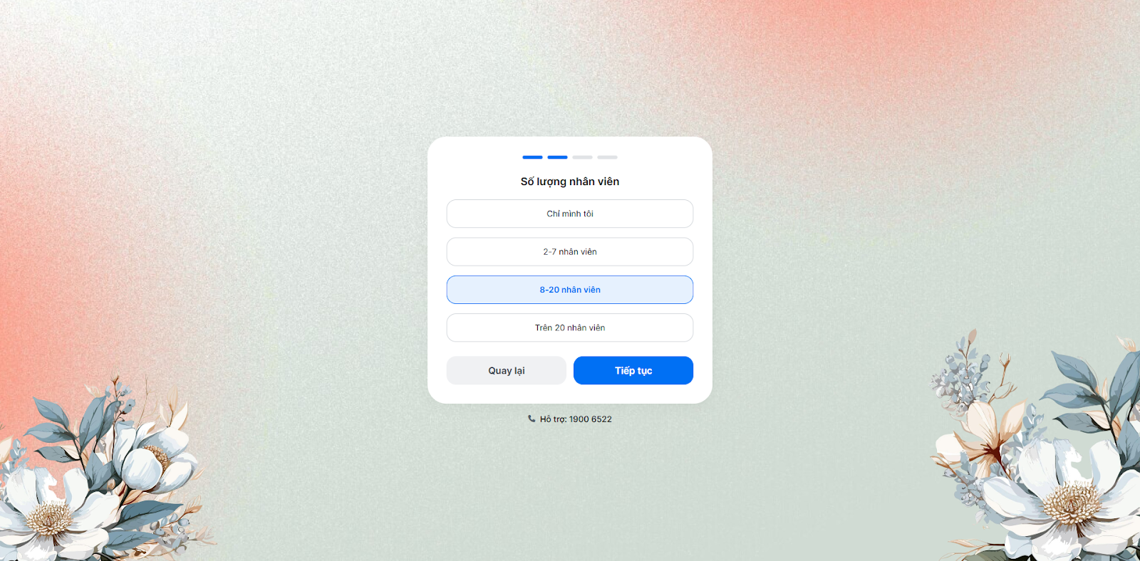 - Tiếp tục chọn Số lượng nhân viên → nhấn Tiếp tục.