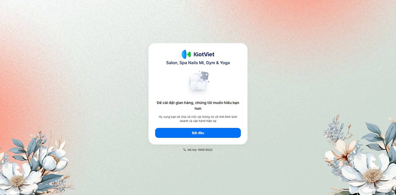 - Tại lần đầu tiên đăng nhập vào phần mềm sau khi đã đăng ký thành công gian hàng KiotViet, bạn nhấn Bắt đầu.