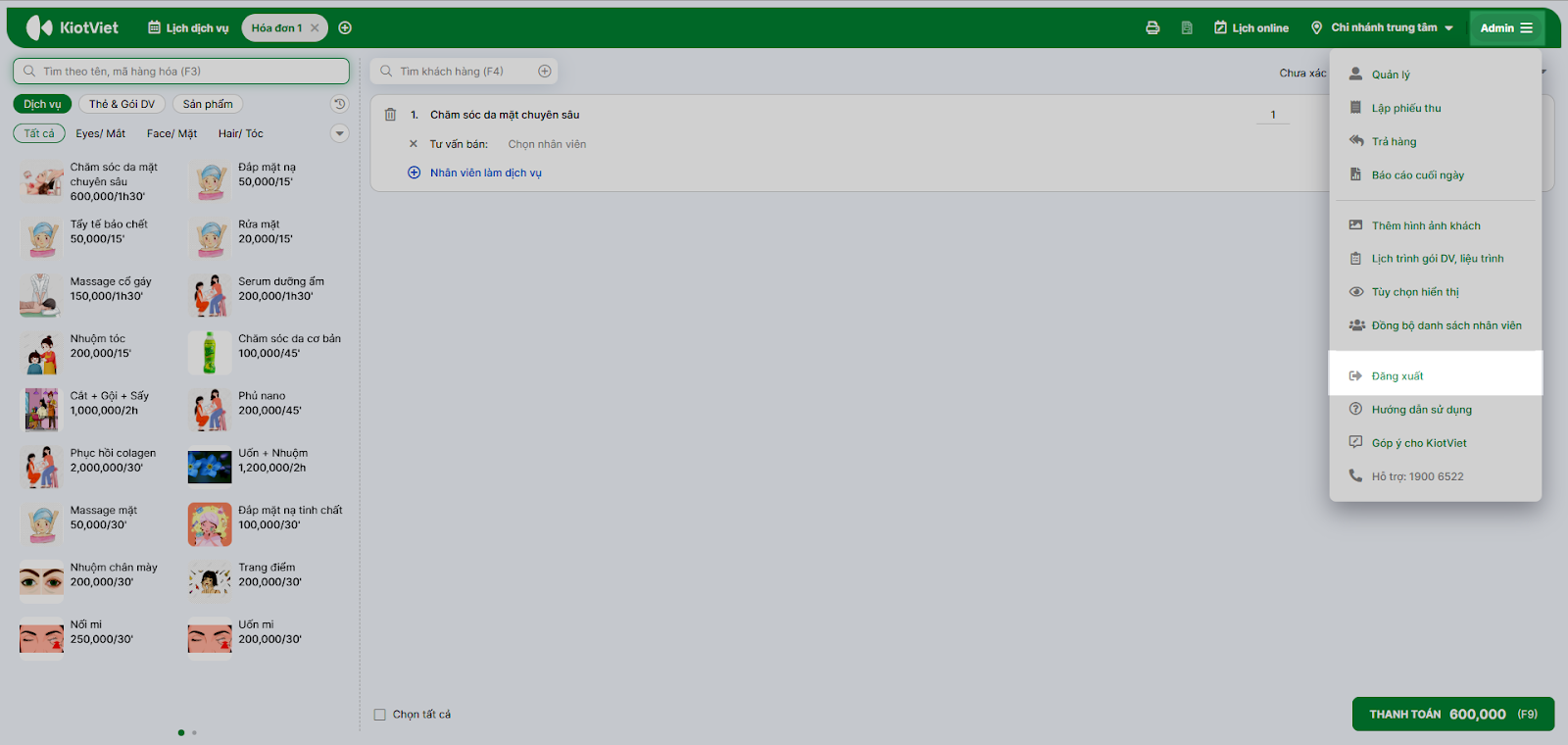 - Tình huống: Bạn vừa đăng ký tài khoản và muốn hệ thống tạo sẵn danh sách các dịch vụ Spa mẫu (Cắt tóc, Gội đầu, Massage…) để hình dung cách phần mềm hoạt động trước khi nhập liệu thật.