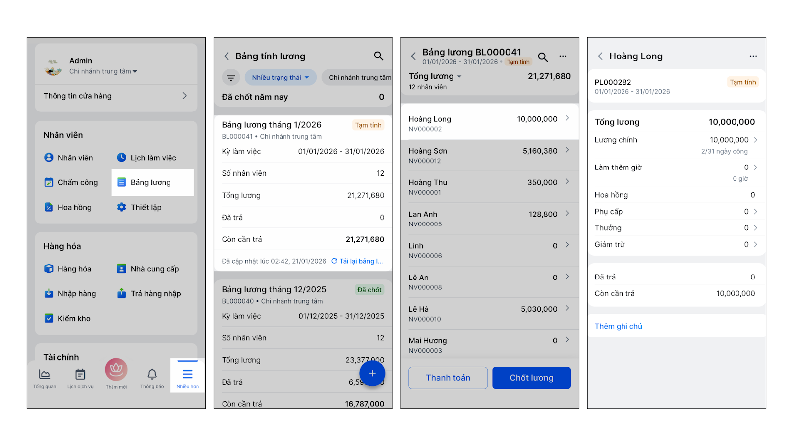 - Tình huống: Bạn là nhân viên và muốn kiểm tra bảng lương cùng với chi tiết hoa hồng của mình một cách minh bạch và tiện lợi.