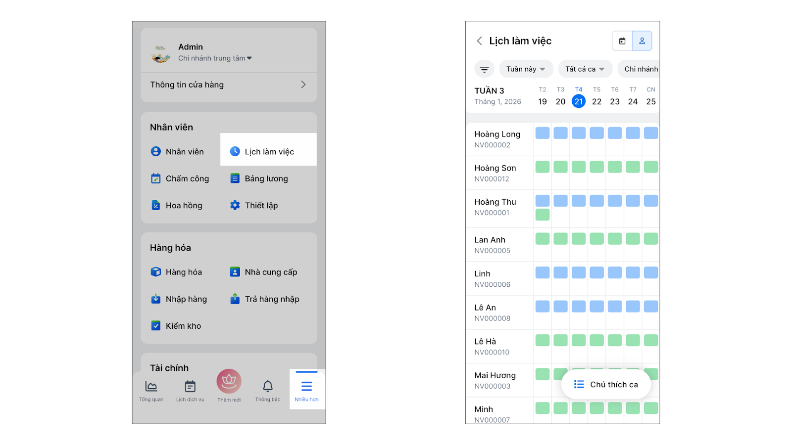 - Thao tác thực hiện như sau: Ứng dụng giúp bạn quản lý và theo dõi lịch làm việc cá nhân, đảm bảo bạn luôn nắm rõ các ca làm việc.