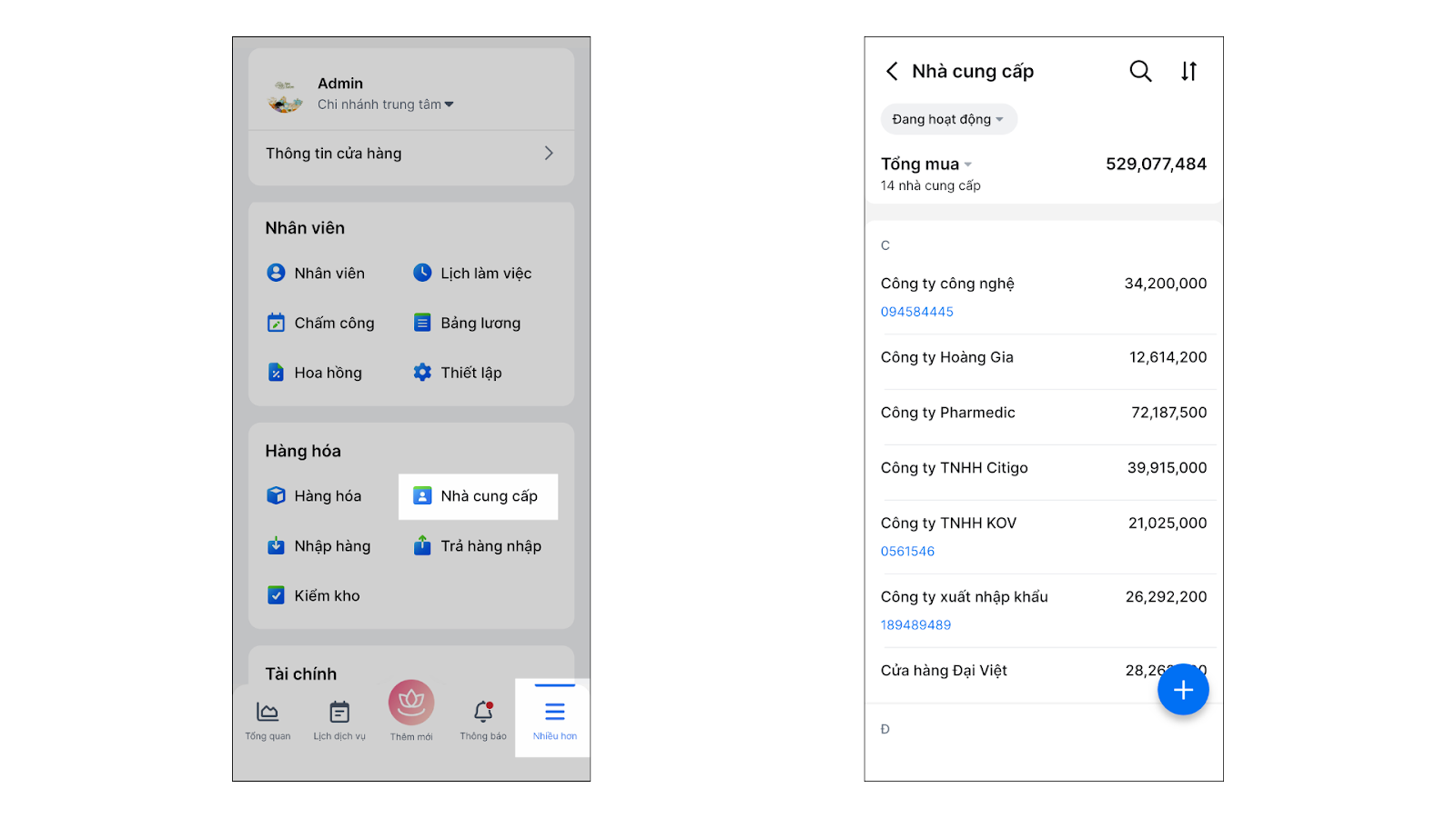 - Vào menu Nhiều hơn → chọn Nhà cung cấp.