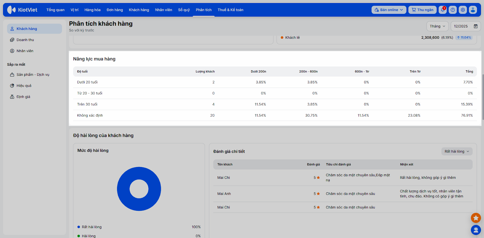 Bố cục tính năng Phân tích khách hàng bao gồm 2 phần: