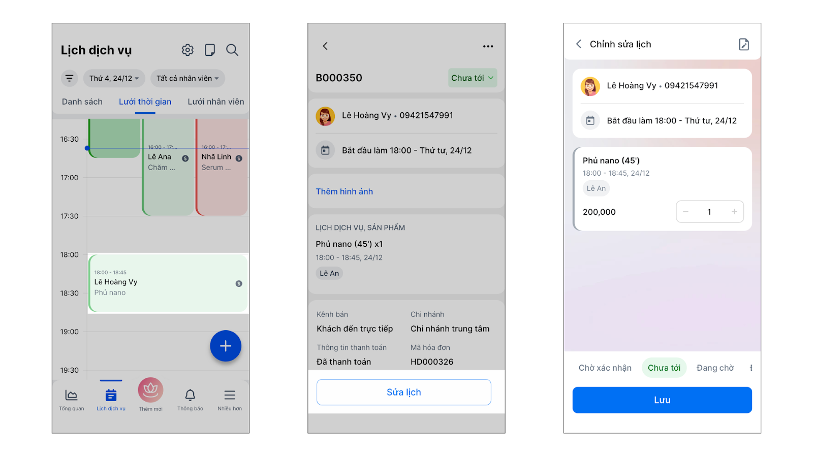 - Chạm vào lịch hẹn cần thay đổi trên màn hình lưới hoặc danh sách.