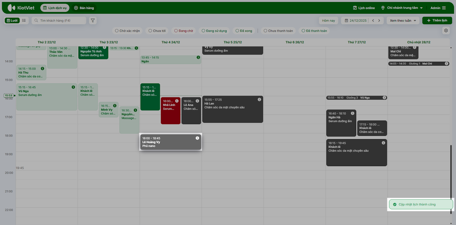 - Hệ thống sẽ tự động cập nhật thời gian và người thực hiện mới cho lịch hẹn đó ngay lập tức.