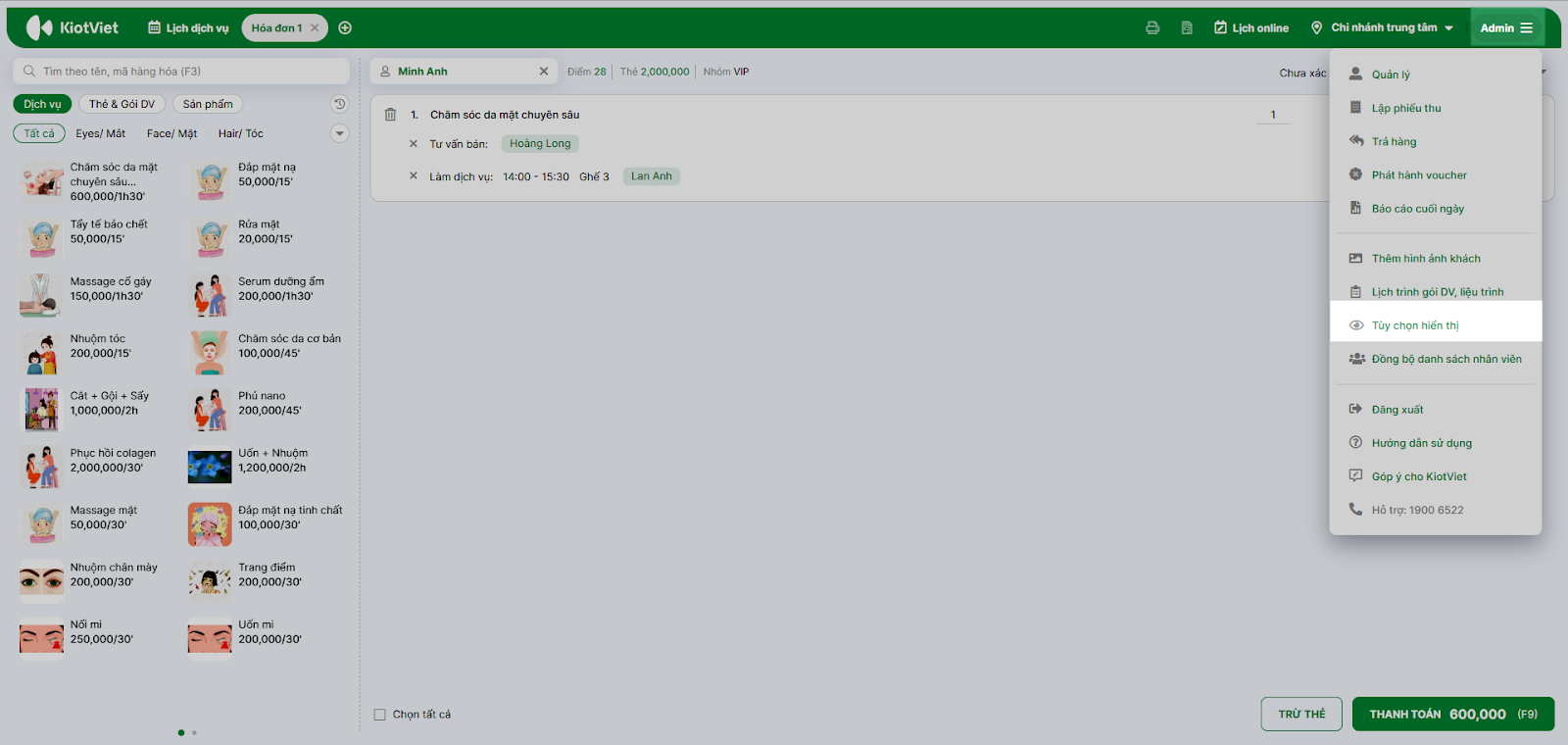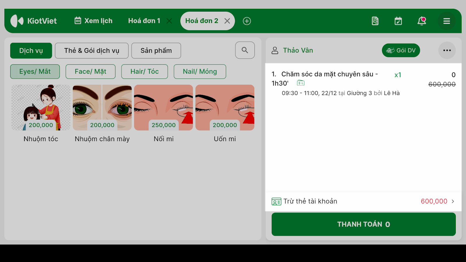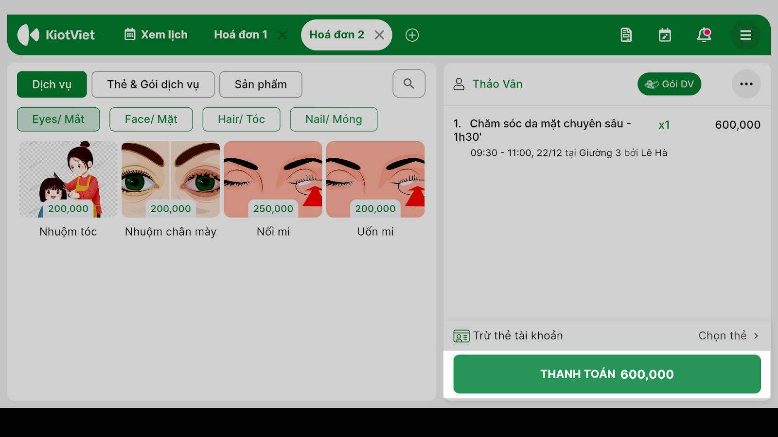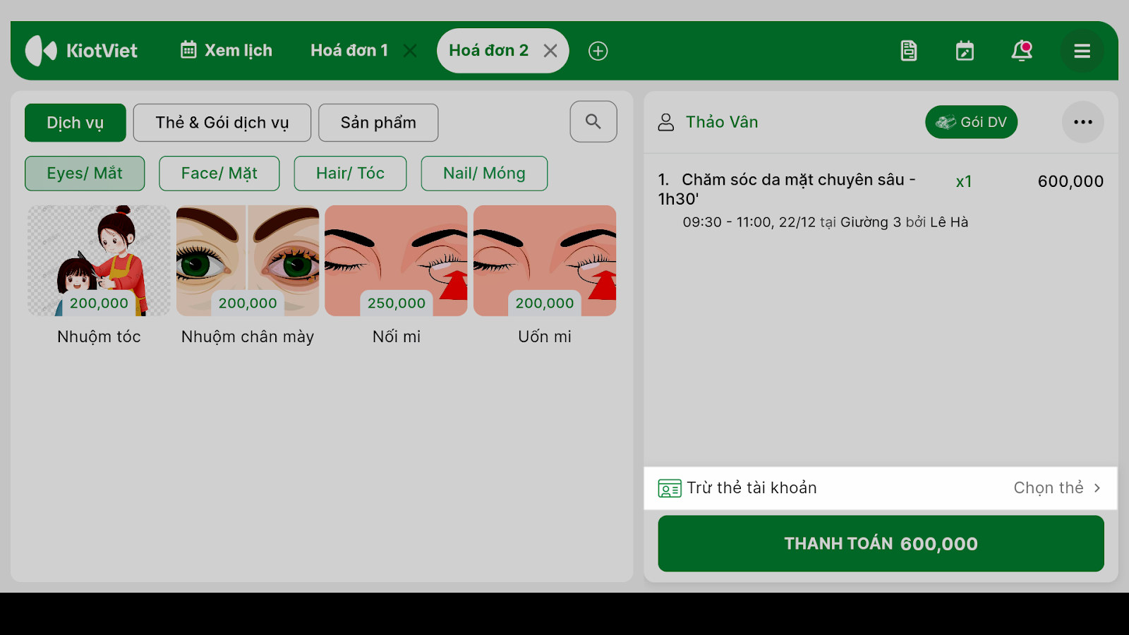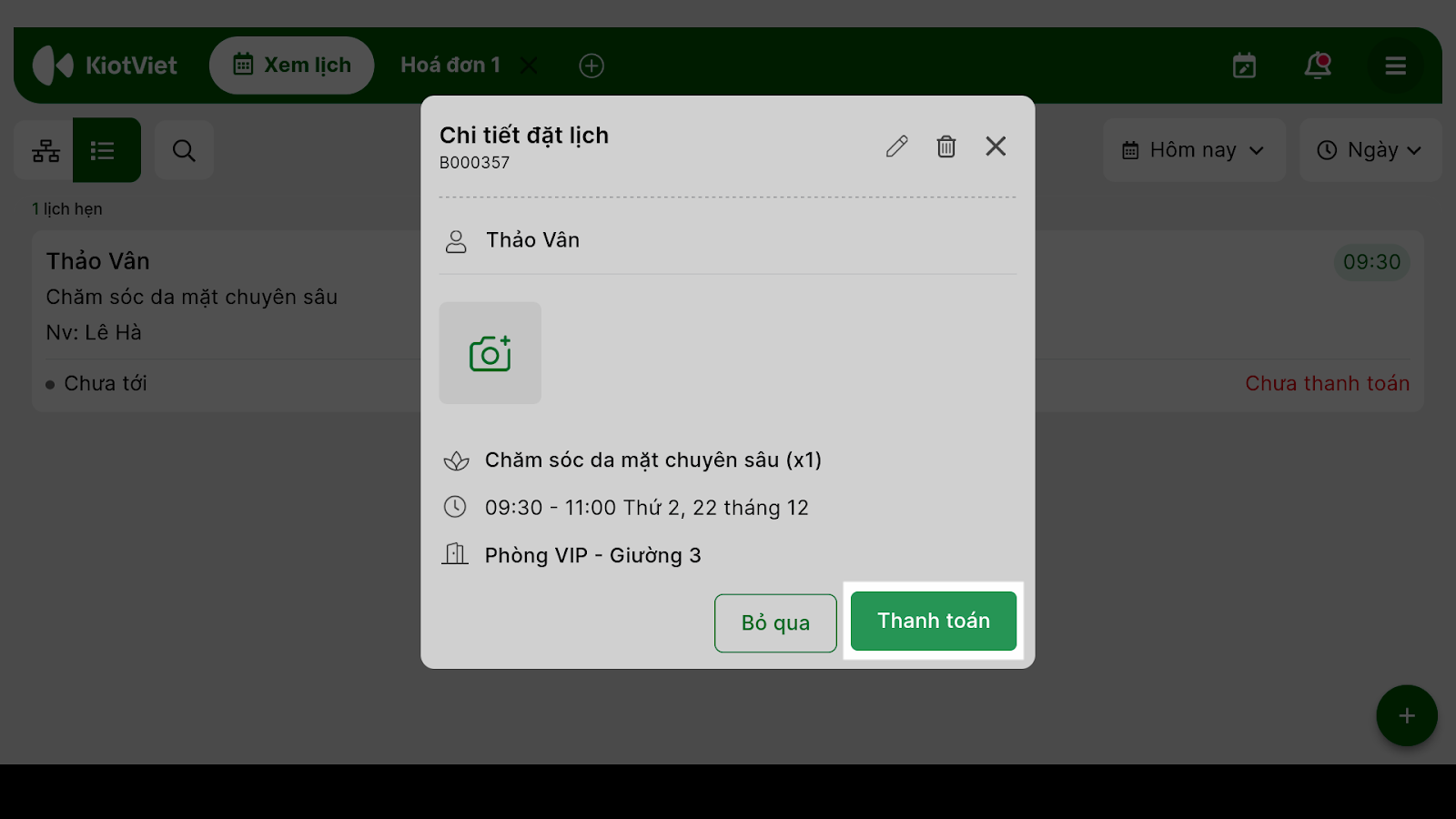 1. Thanh toán cho Lịch hẹn hoặc Khách lẻ
