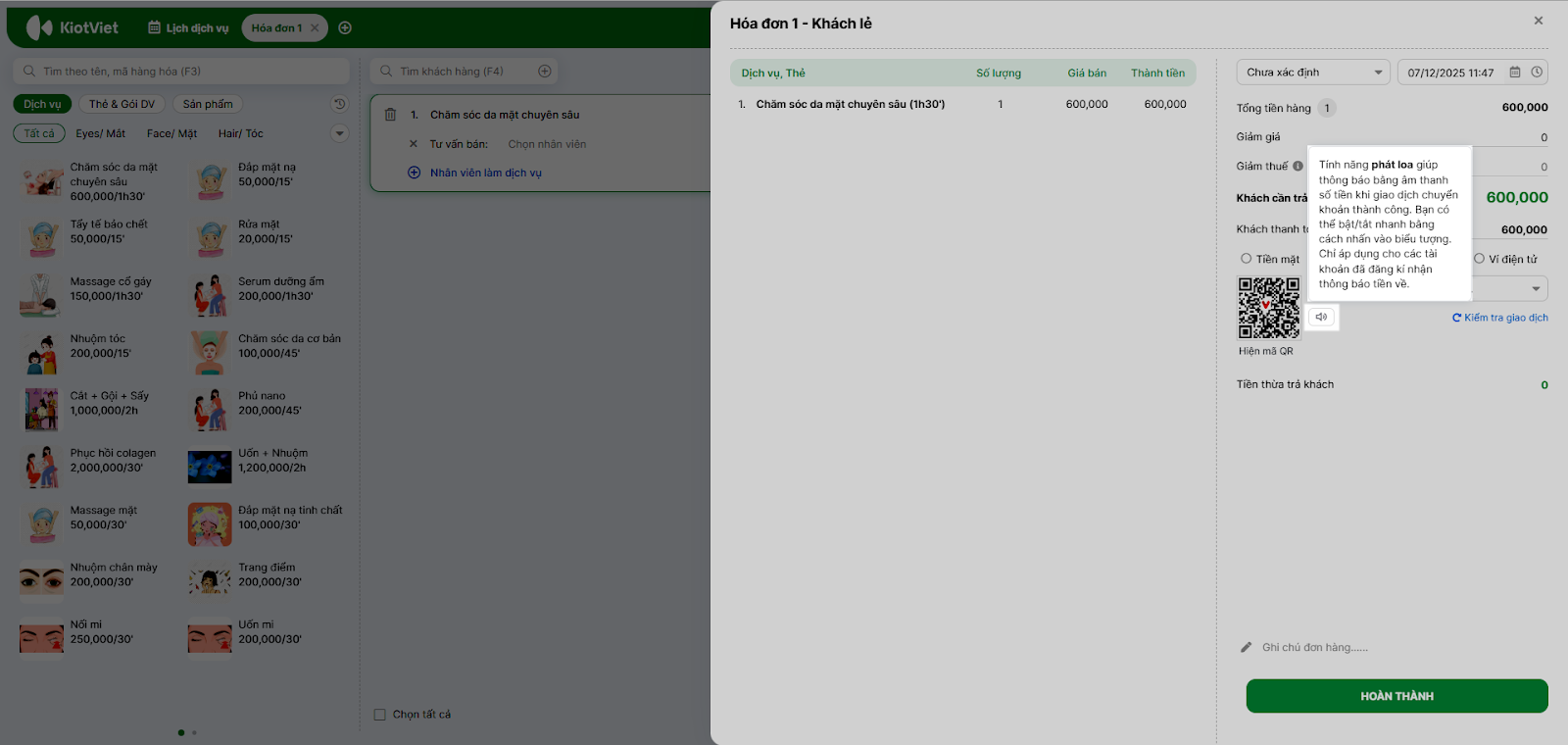 2. Tự động hoàn thành hóa đơn & Thông báo âm thanh