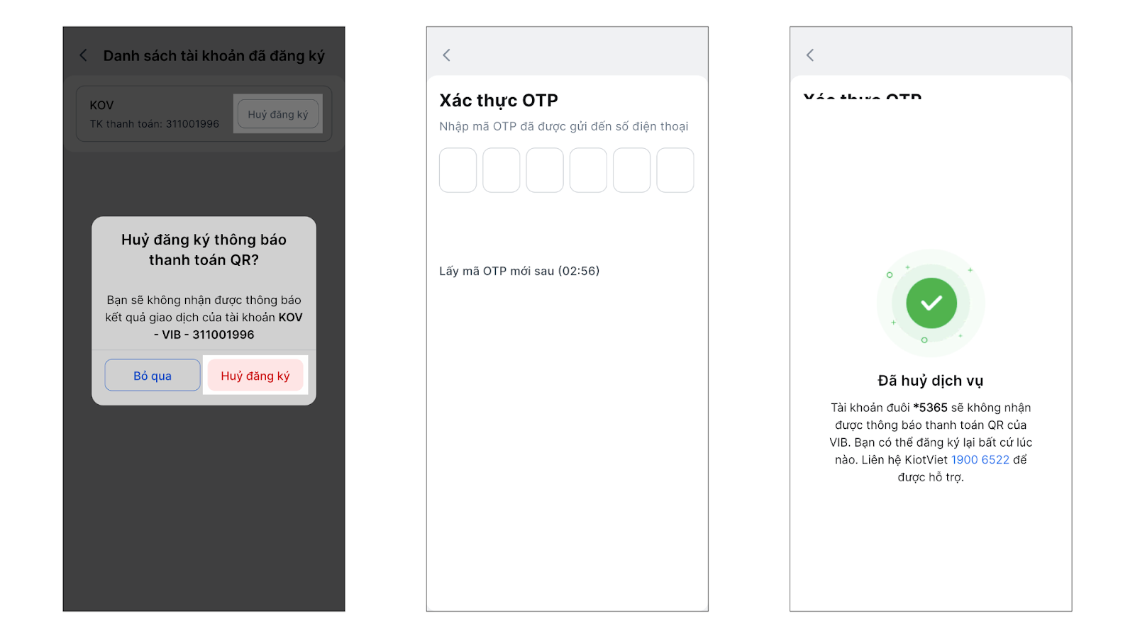 - 2. Hủy dịch vụ nhận thông báo thanh toán VIB