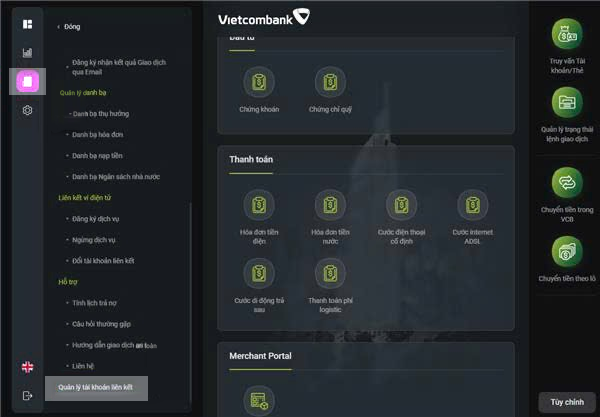 1. Xem danh sách tài khoản Vietcombank đã đăng ký dịch vụ