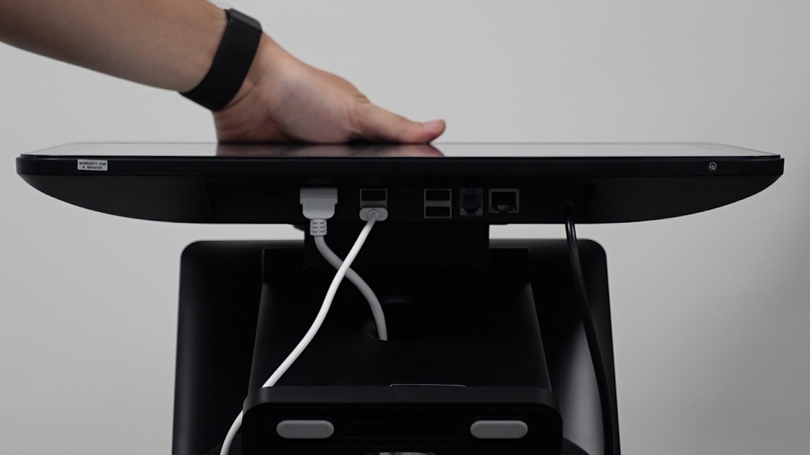 - Kết nối màn hình hiển thị QR vào cổng USB trên máy POS. Thiết bị sẽ được tự động nhận diện (cắm là chạy) mà không cần cài đặt.