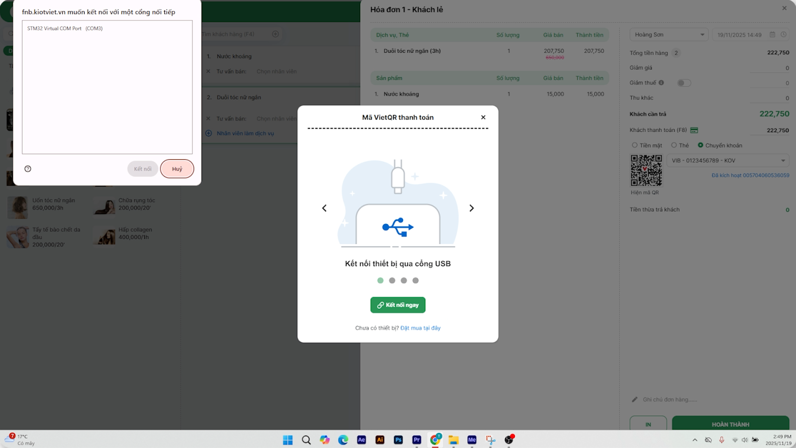 - Tình huống: Bạn muốn sử dụng màn hình hiển thị QR chuyên dụng với máy KiotViet Salon POS.