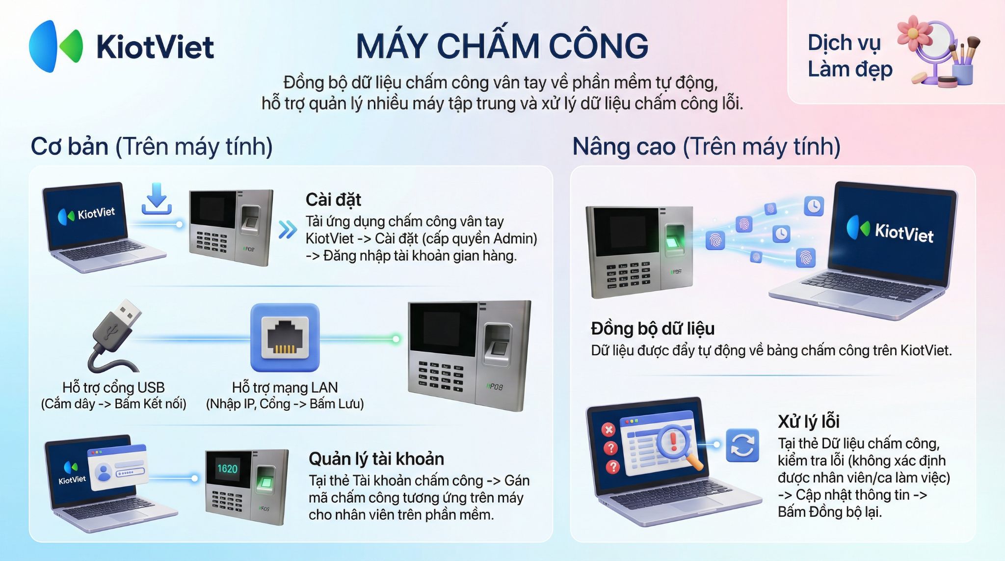 Ứng dụng KiotViet Quản lý máy chấm công hỗ trợ bạn: