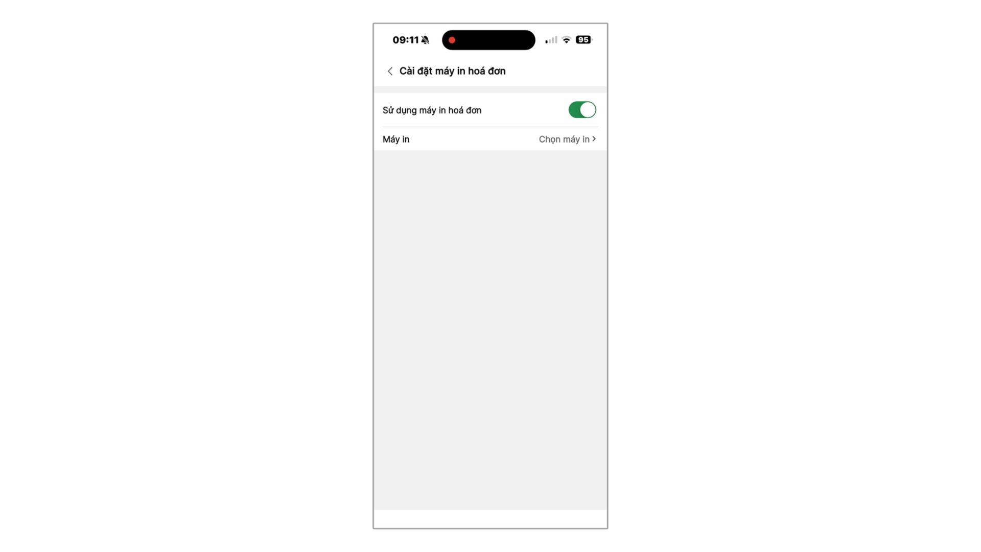 Tính năng Máy In Hóa Đơn trên ứng dụng di động hỗ trợ cửa hàng thực hiện các thao tác: Kết nối và in hóa đơn qua mạng LAN
