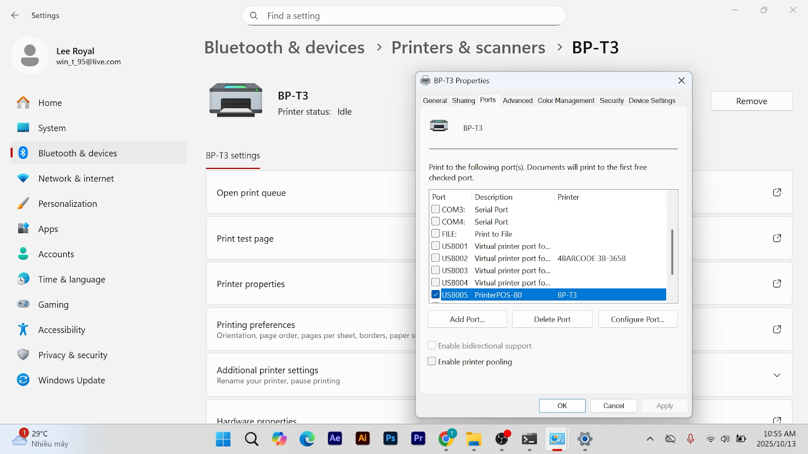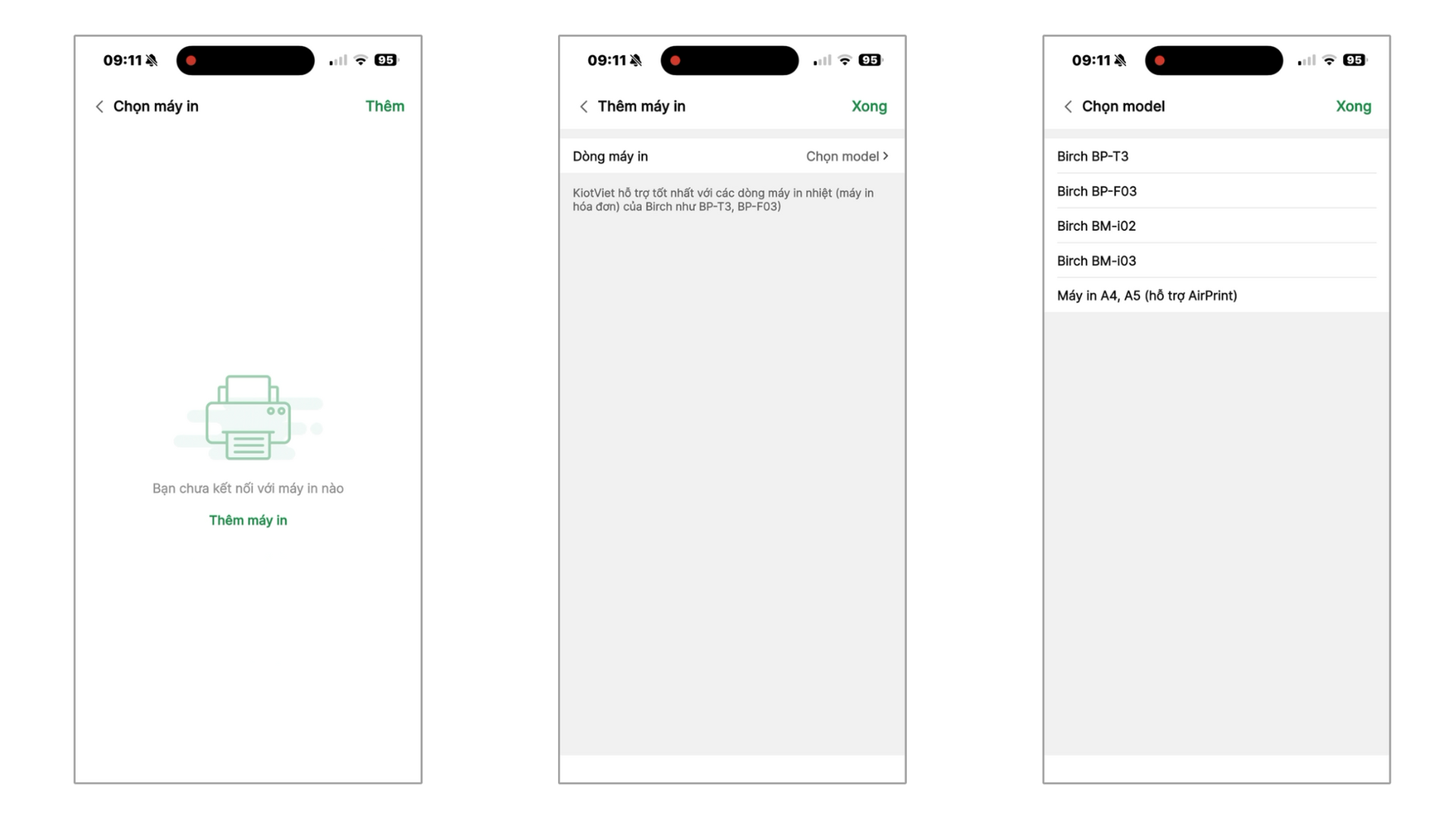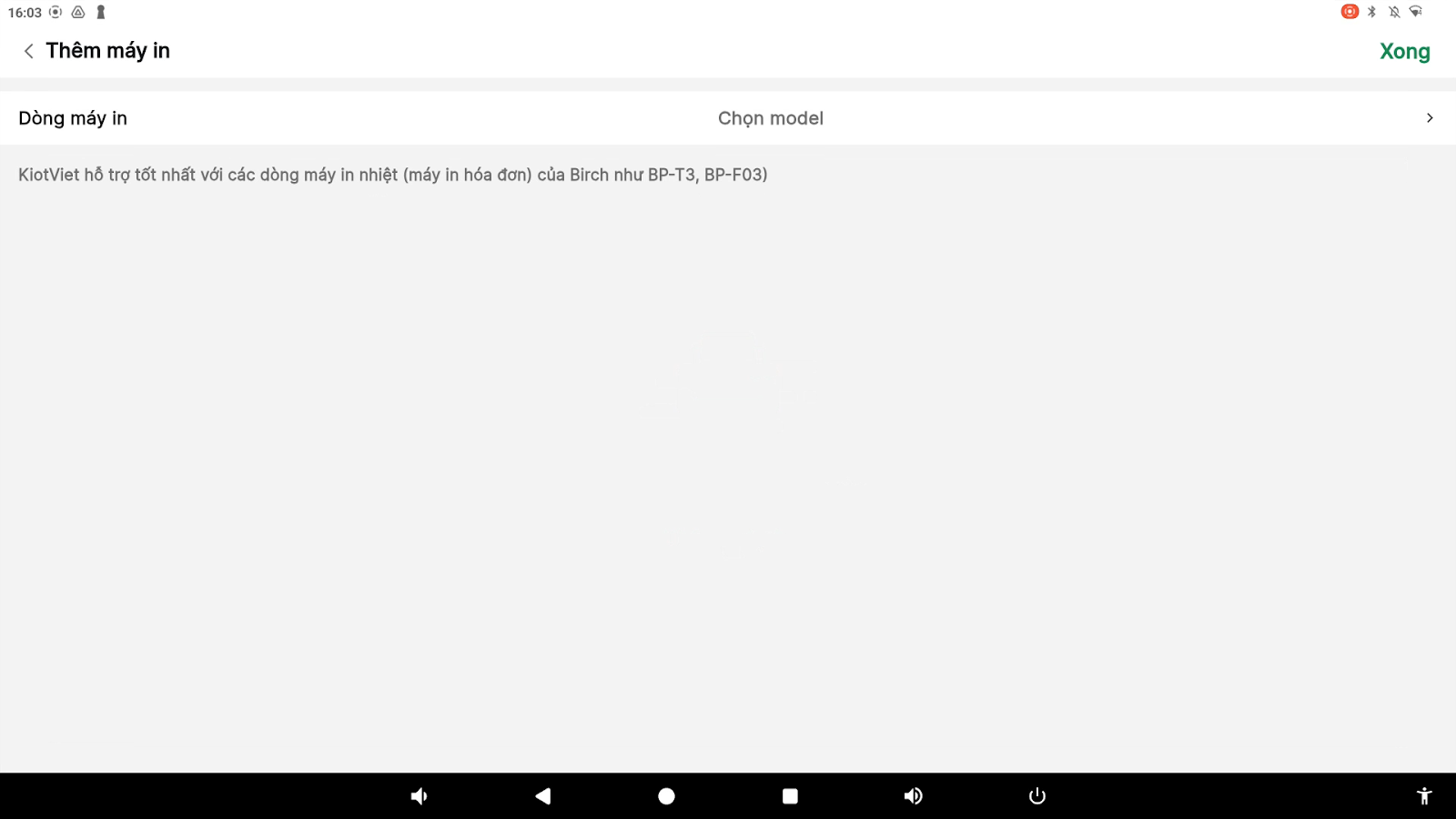- Nhấn nút Thêm, Chọn Dòng máy in (ví dụ: Birch BP-T3).