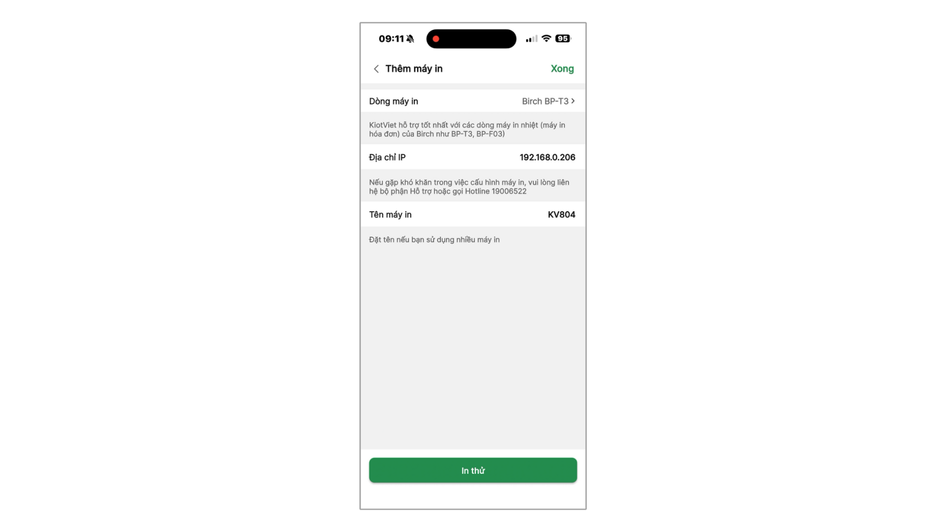 - Tình huống: Bạn muốn in hóa đơn từ ứng dụng KiotViet Salon trên điện thoại ra máy in mạng. Tình huống này yêu cầu bạn đã hoàn thành việc cấu hình IP cố định cho máy in cùng dải mạng với điện thoại.