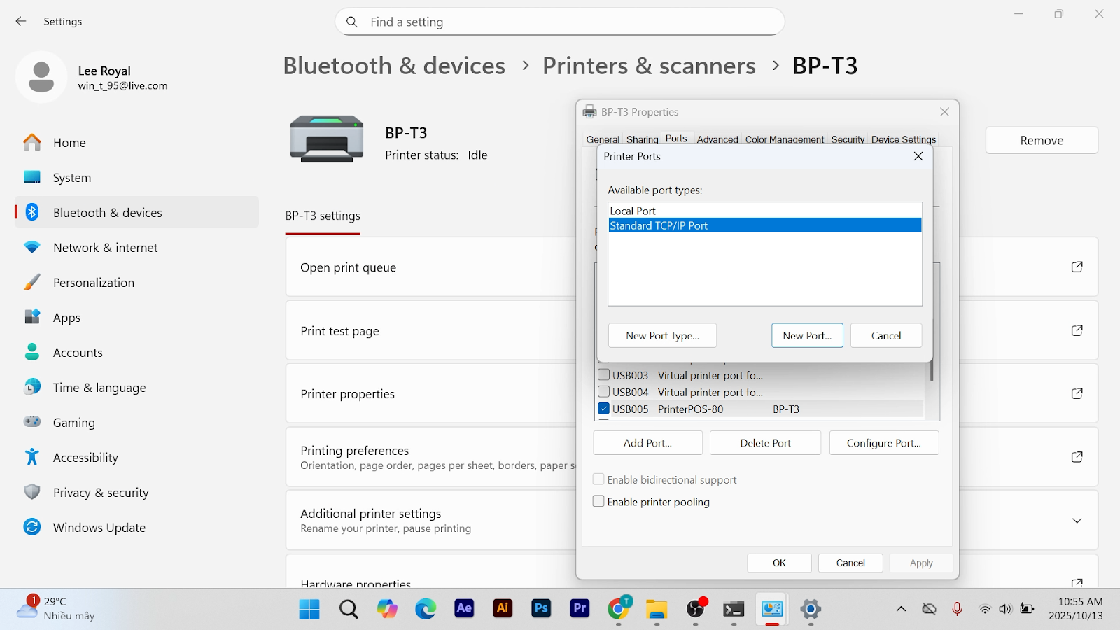 - Tình huống: Sau khi máy in đã có IP cố định, bạn cần cấu hình trên máy tính để có thể ra lệnh in qua mạng.