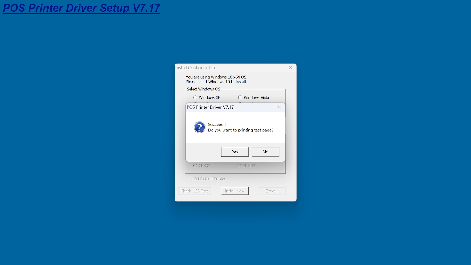 - Nhấn Install Now. Khi được hỏi có muốn in trang thử (Print Test Page) không, chọn Yes để hoàn tất.