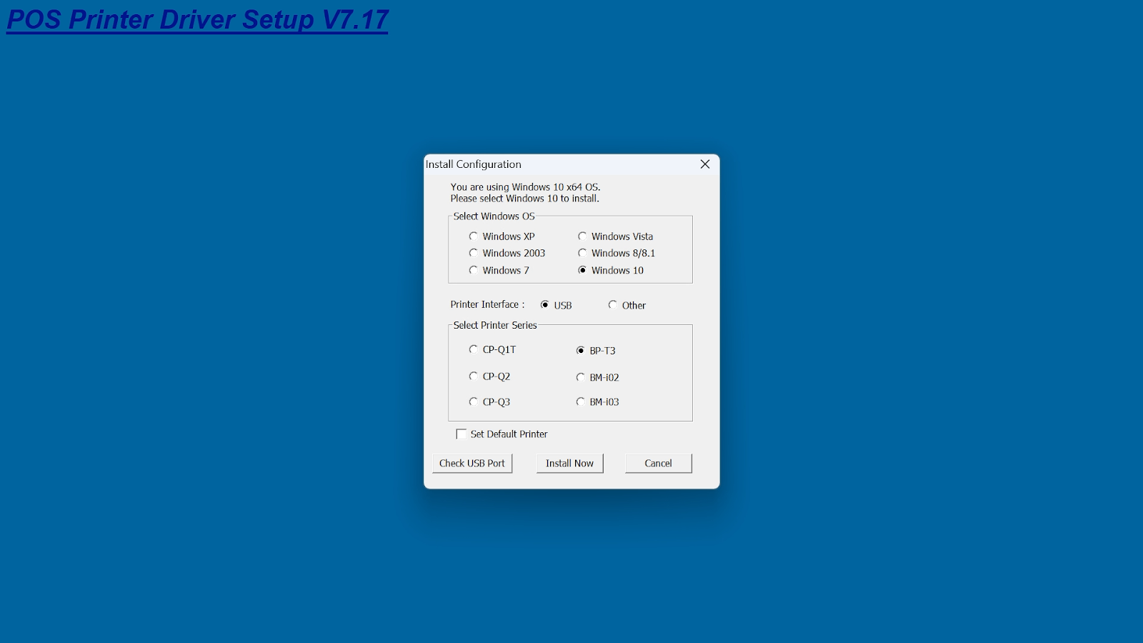 - Khi cửa sổ cấu hình “POS Printer Driver” hiện ra, bạn thiết lập như sau:
