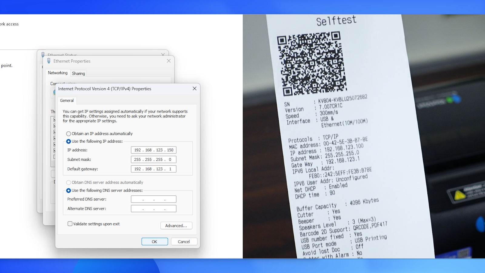 - Tình huống: Bạn cần thêm máy in mạng vào ứng dụng trên máy POS để in hóa đơn. Tình huống này yêu cầu bạn đã hoàn thành việc cấu hình IP cố định cho máy in cùng dải mạng với máy POS.